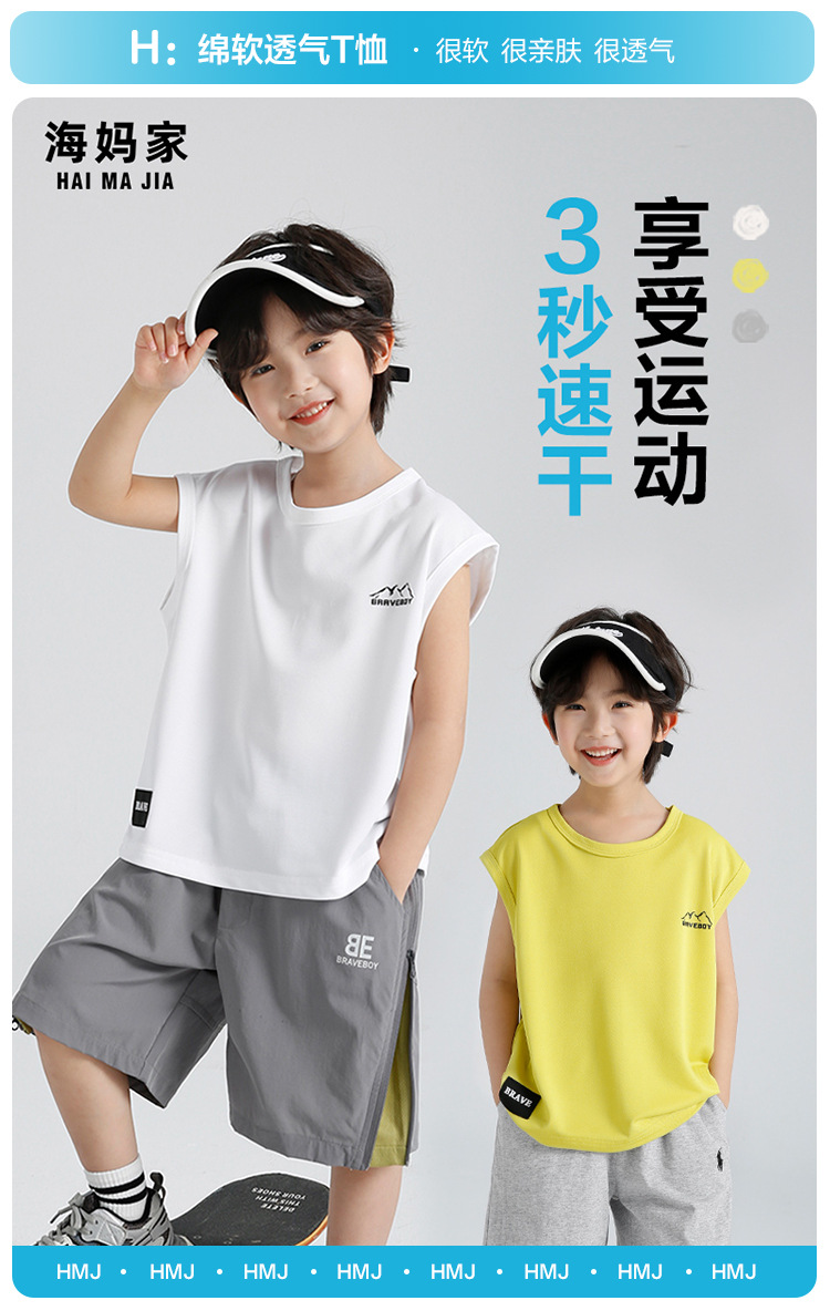 하이마의 2026년 여름 신상 남아용 산악 스타일 속건 민소매 조끼 여름 티셔츠 트렌디한 중대형 아동복스토어 가기