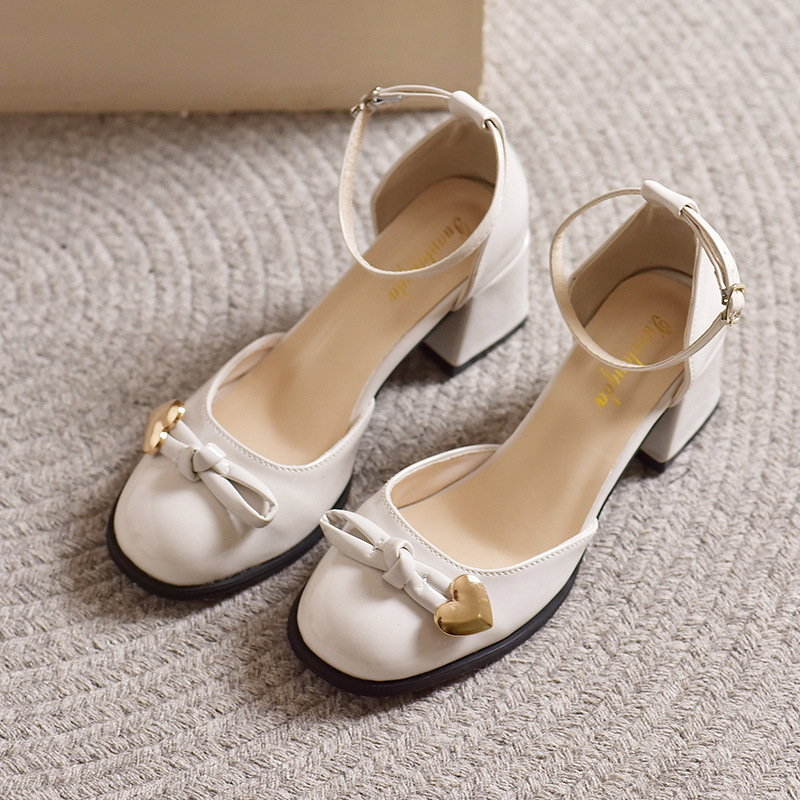 메리 제인 여성 빨간색 작은 가죽 신발 여름 새로운 하이힐 여성 신발 프랑스 복고풍 둥근 발가락 두꺼운 굽 사계절 결혼식 신발