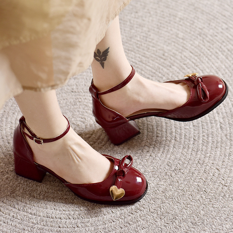메리 제인 여성 빨간색 작은 가죽 신발 여름 새로운 하이힐 여성 신발 프랑스 복고풍 둥근 발가락 두꺼운 굽 사계절 결혼식 신발스토어 가기