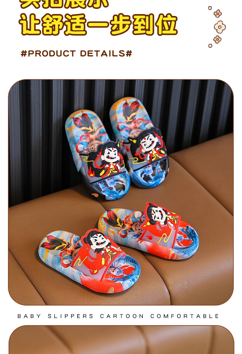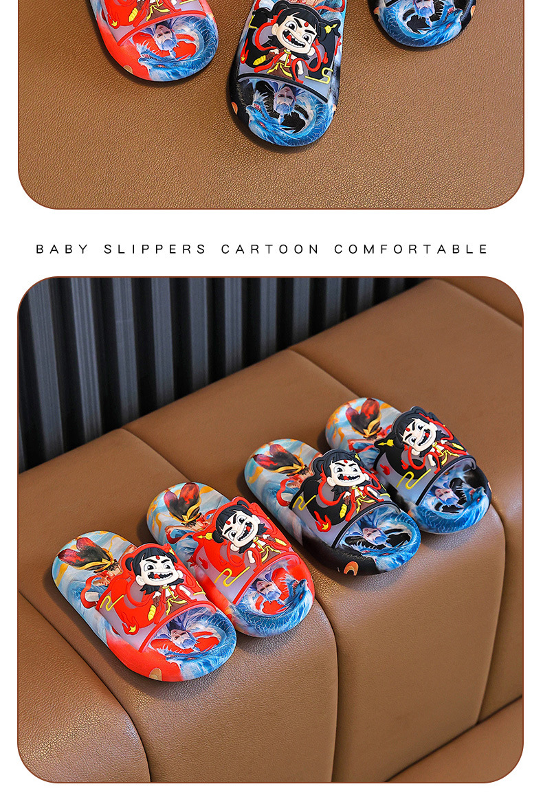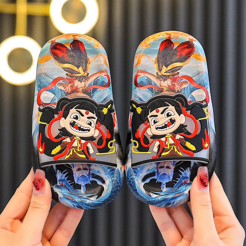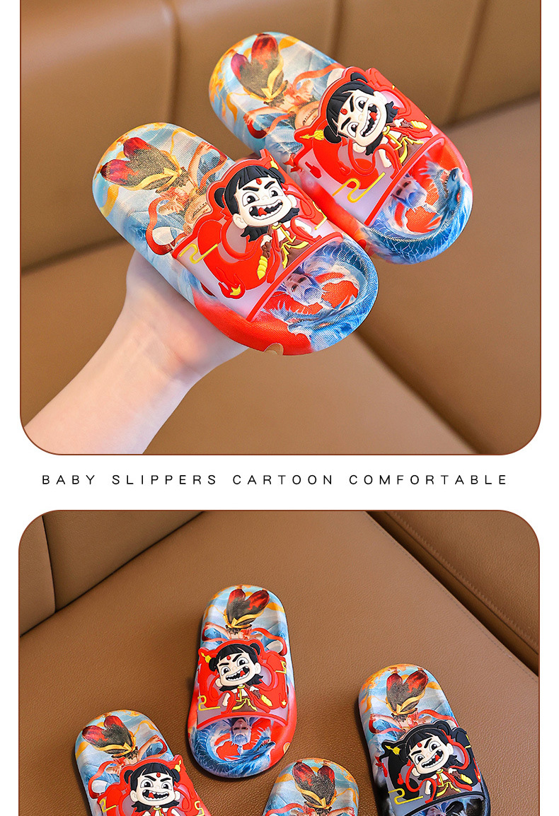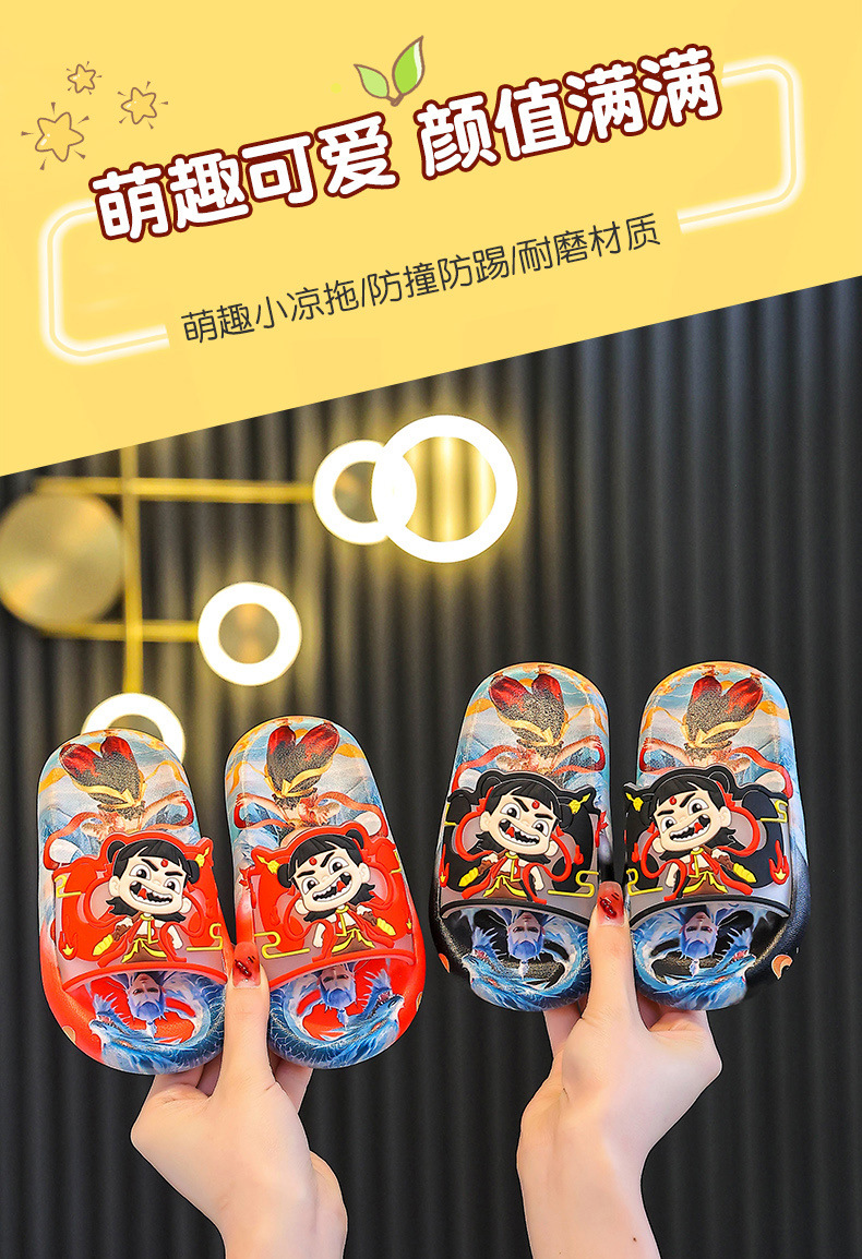 Nezha 슬리퍼 어린이 샌들과 슬리퍼 소년 여름 새로운 실내 홈 미끄럼 방지 만화 샌들 중 큰 어린이스토어 가기