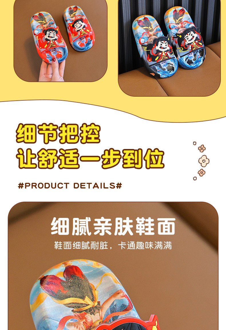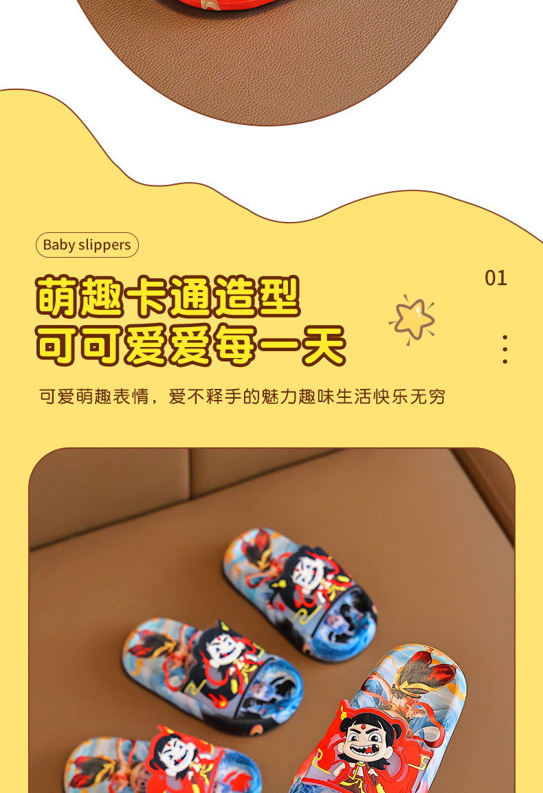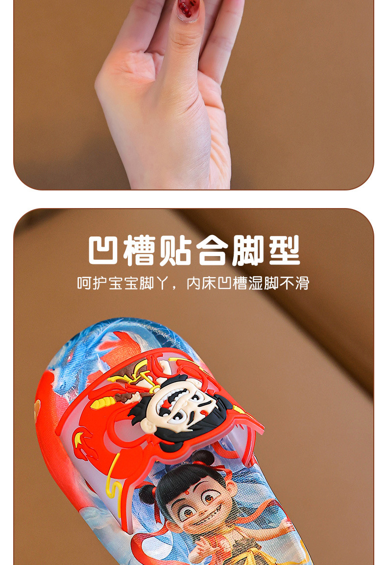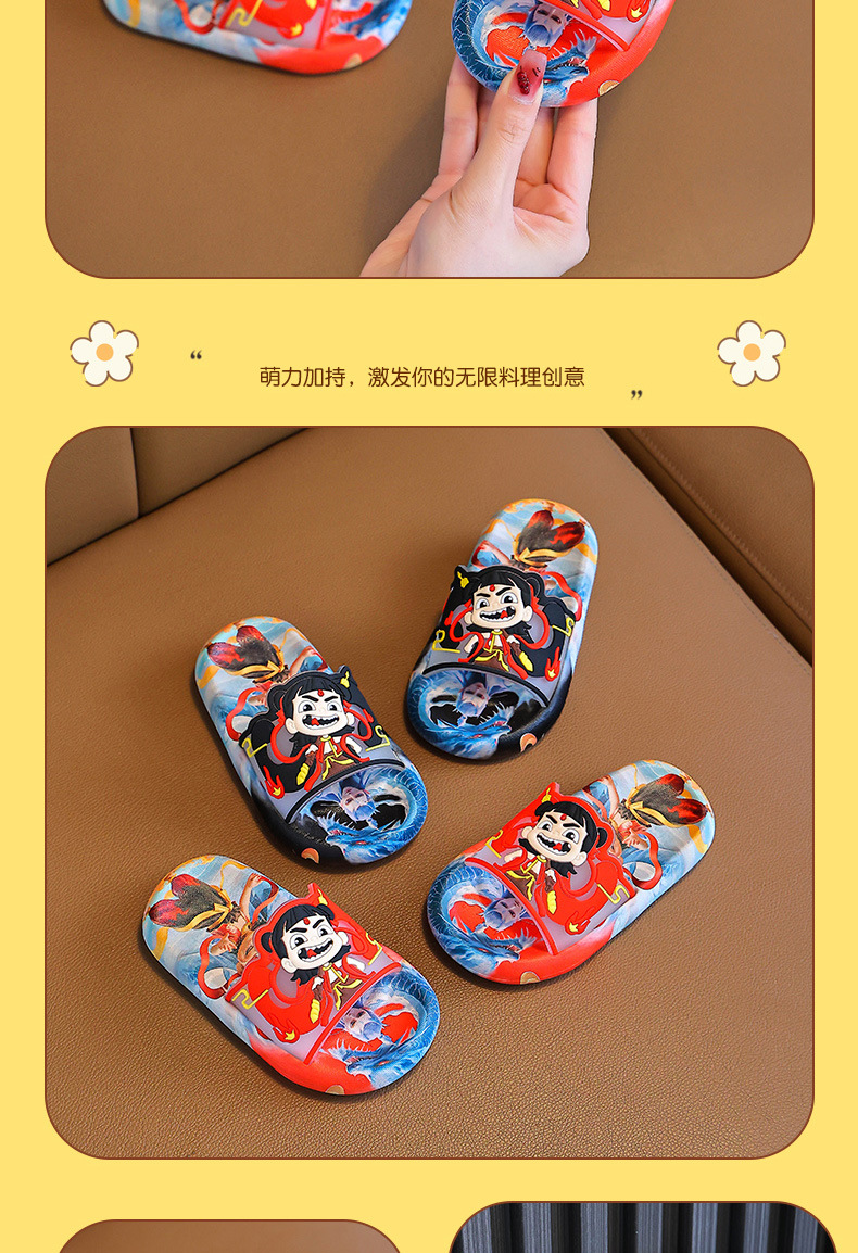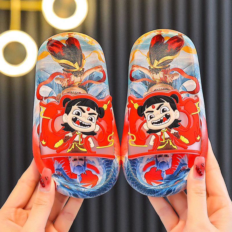 Nezha 슬리퍼 어린이 샌들과 슬리퍼 소년 여름 새로운 실내 홈 미끄럼 방지 만화 샌들 중 큰 어린이스토어 가기