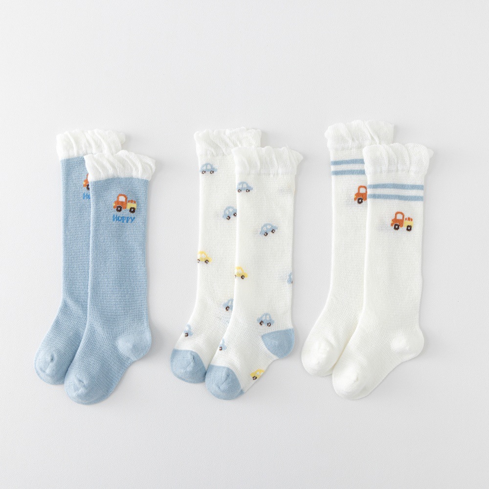 2025新初生婴幼儿卡通女宝夏季薄款防蚊网眼透气长筒无骨袜子批发