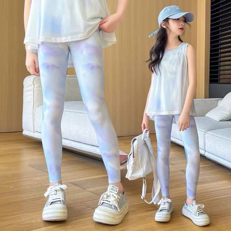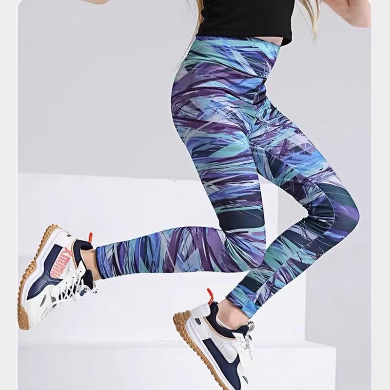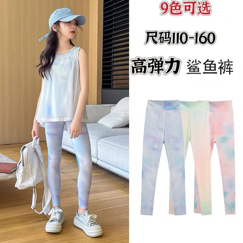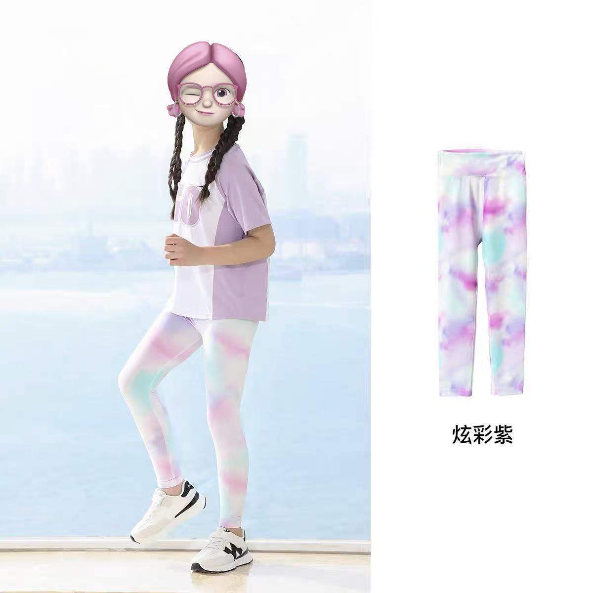 어린이 높은 탄성 요가 바지 새로운 소녀 그라디언트 스트레치 스포츠 바지 아기 소녀 봄 가을 여름 외부 착용 레깅스