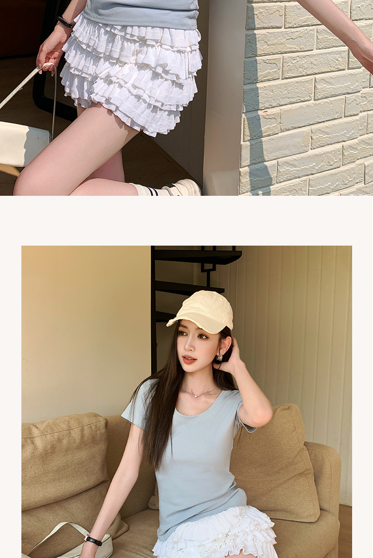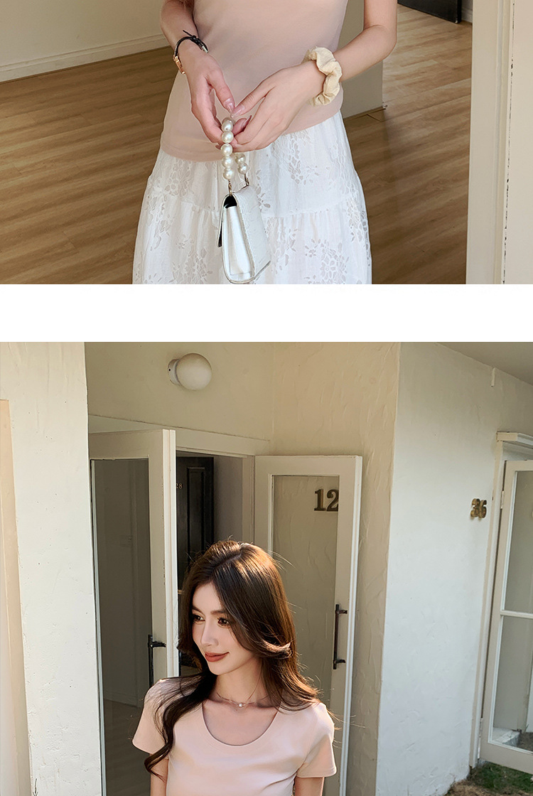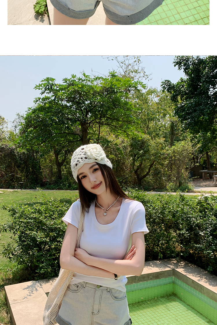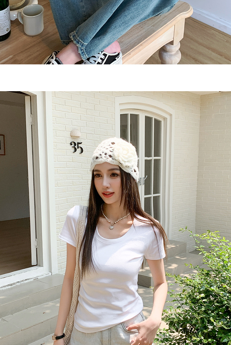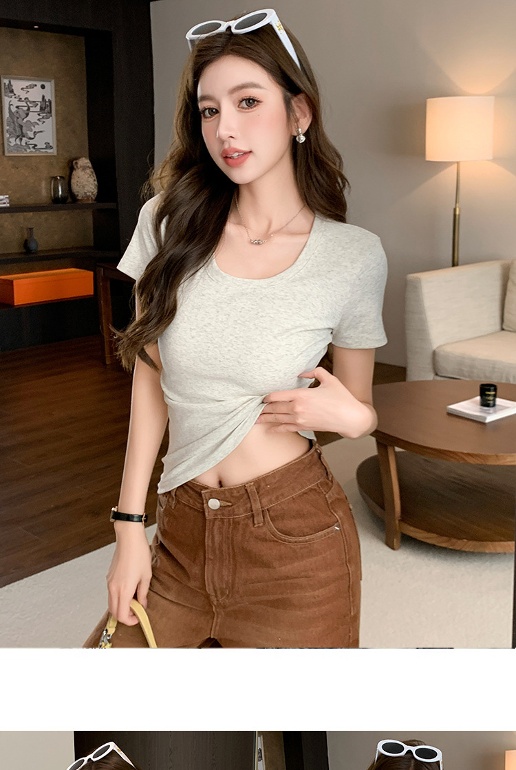 H673 엄선 순면 U-목 반팔 여성용 여름 얇은 슬림-적합 슬리밍 조커 탑 티셔츠 숄더베이스 셔츠스토어 가기