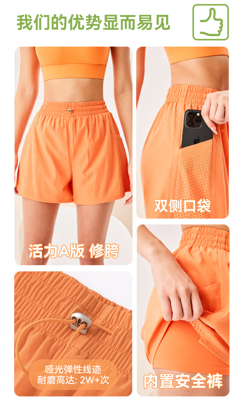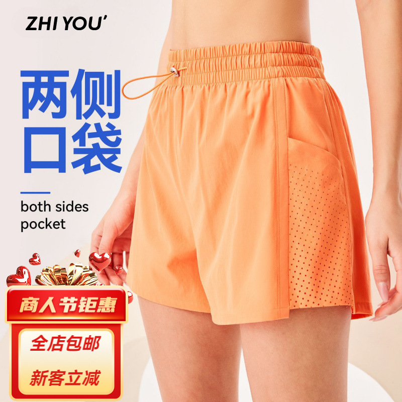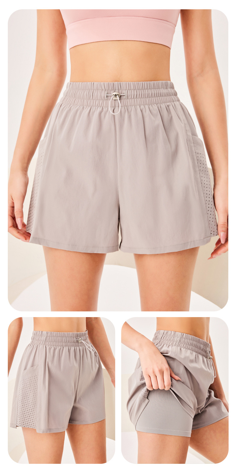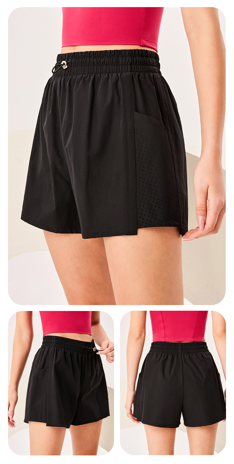 크로스보더 요가 반바지, 노출방지 트레이닝 런닝 반바지, 여성용 통기성 속건 야외용 포켓과 조임끈 포함 9TH09스토어 가기