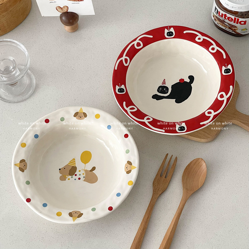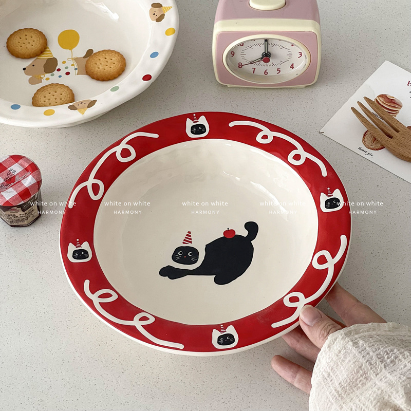 애프터눈 티 디저트 플레이트 홈 아름다운 디너 플레이트 세라믹 아침 식사 플레이트 스타일 고가 과일 샐러드 밀짚 모자 플레이트스토어 가기