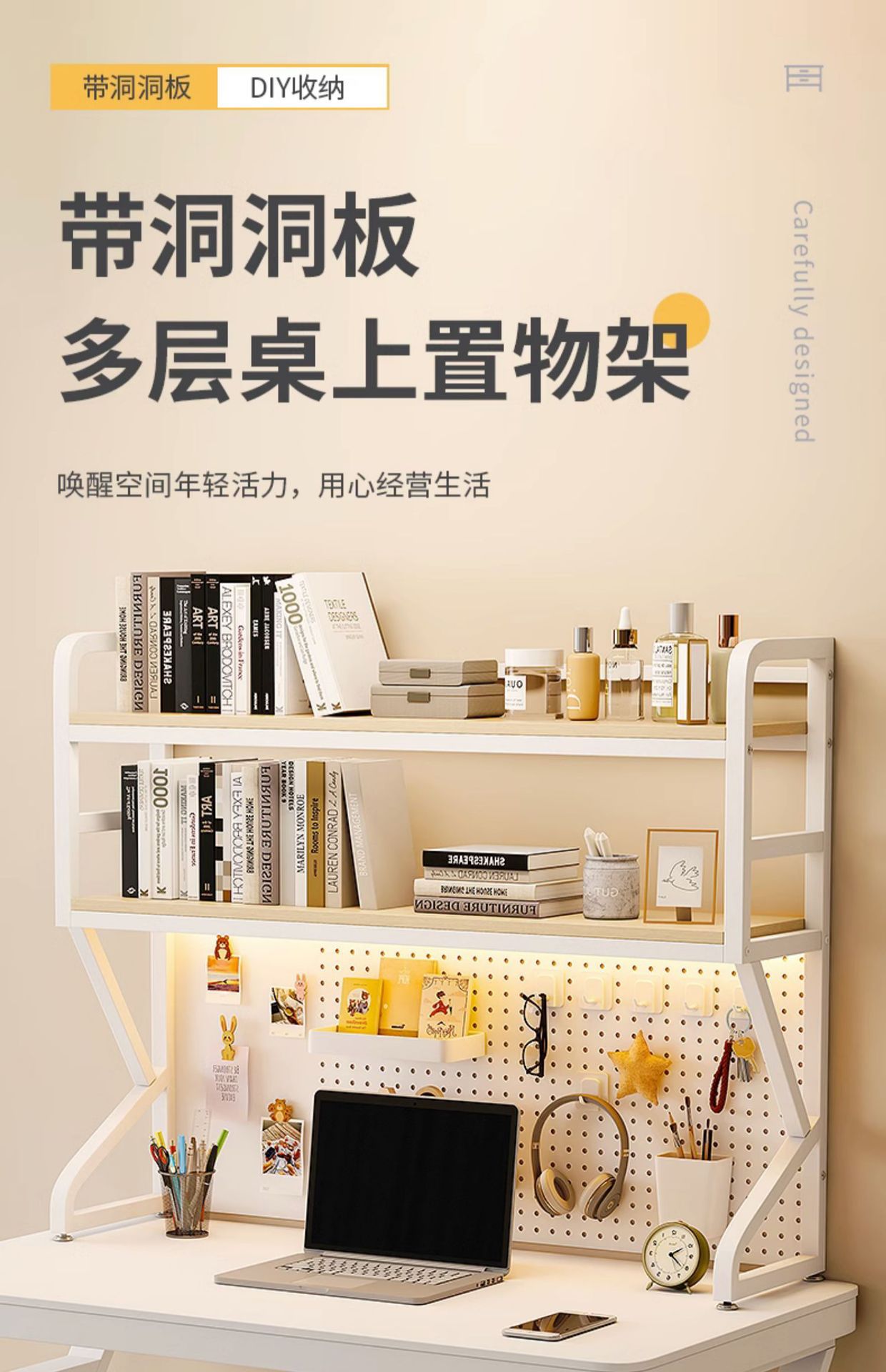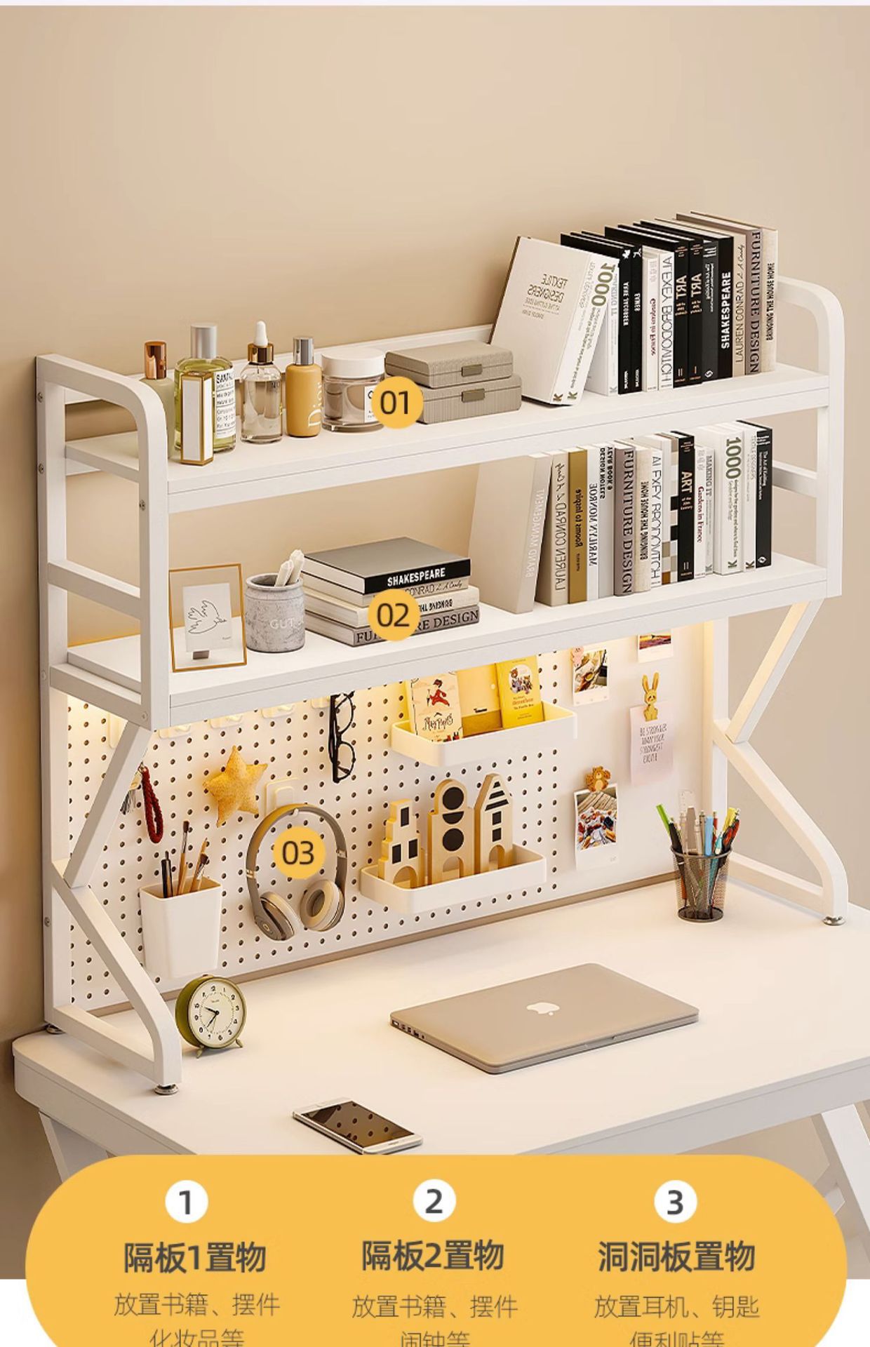 데스크탑 스토리지 랙 사무실 책상 다층 철제 테이블 학생 홈 컴퓨터 테이블 구멍 보드 책장스토어 가기