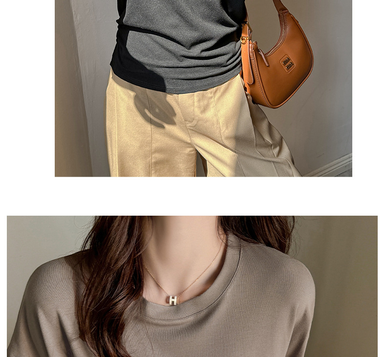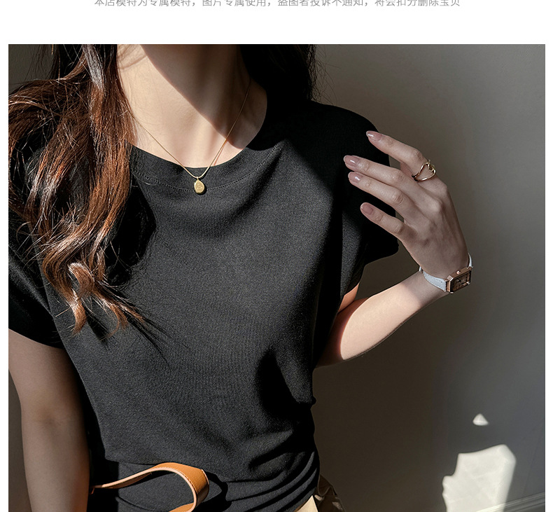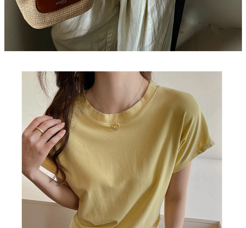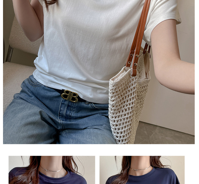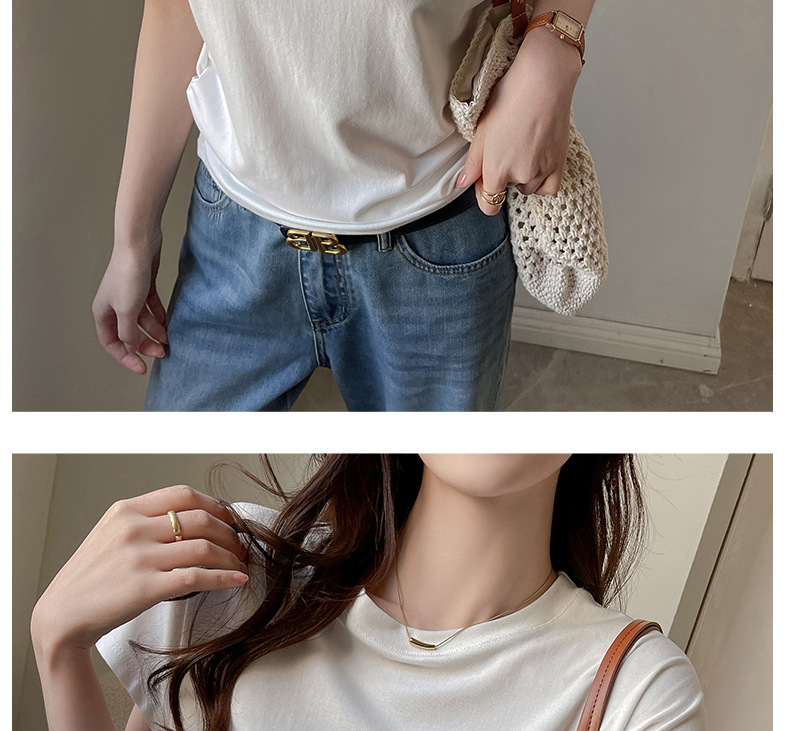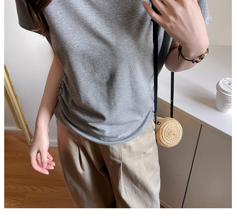라운드넥 솔리드 컬러 캐주얼 다재다능한 루즈한 레이지 스타일 오른쪽 어깨 반팔 티셔츠 여성용 디자인 이너 레이어링 탑