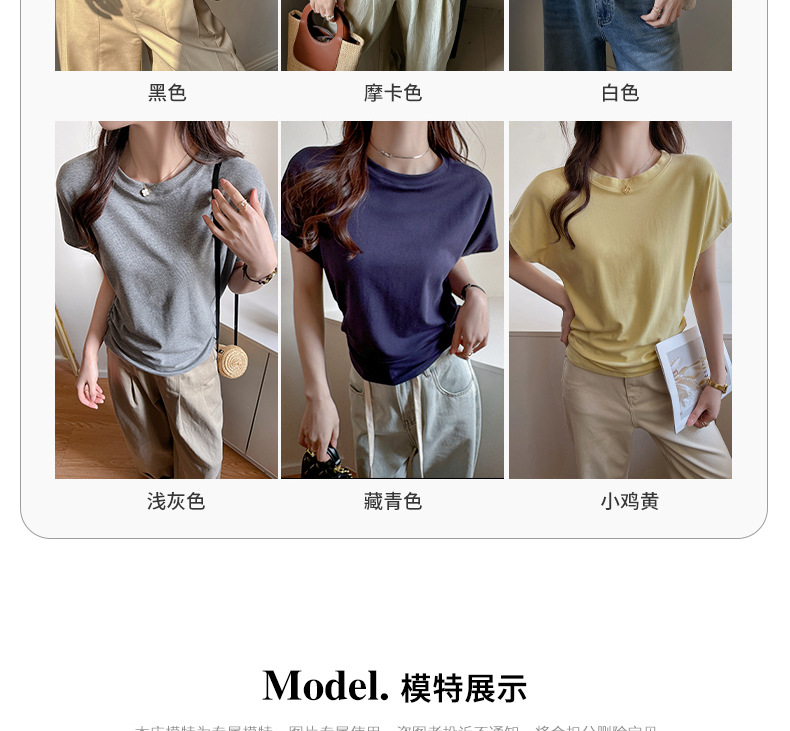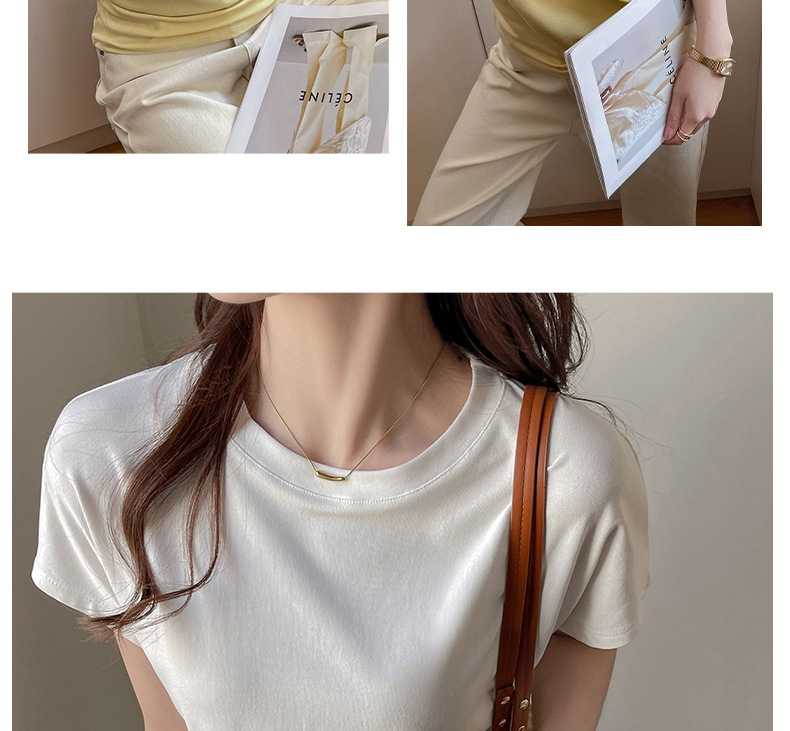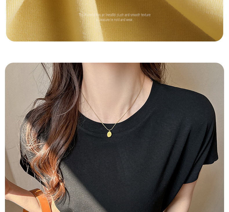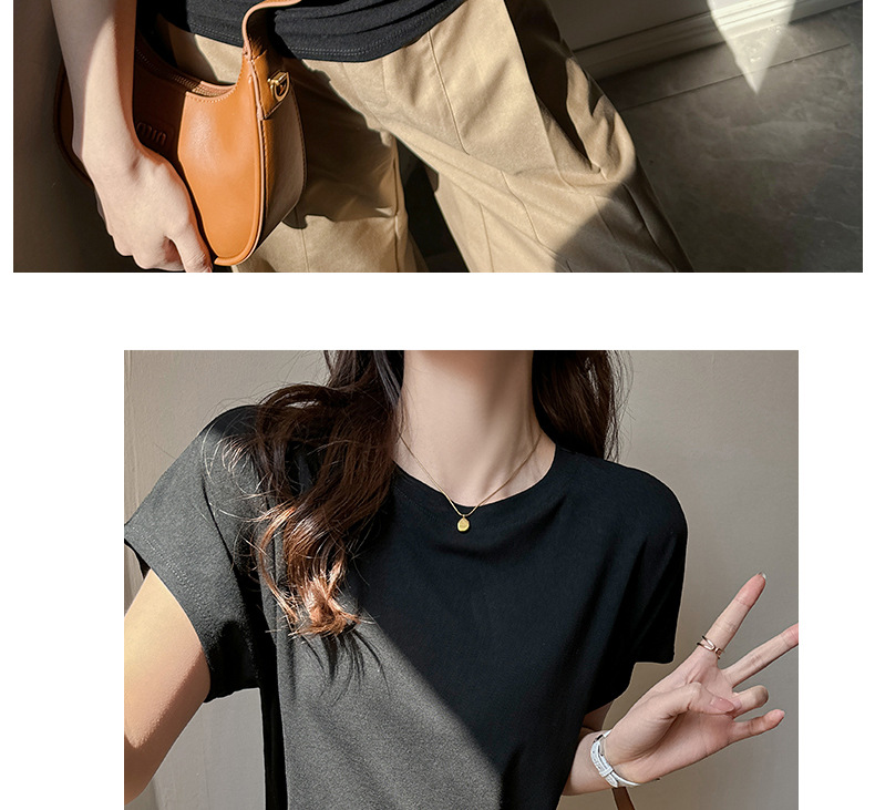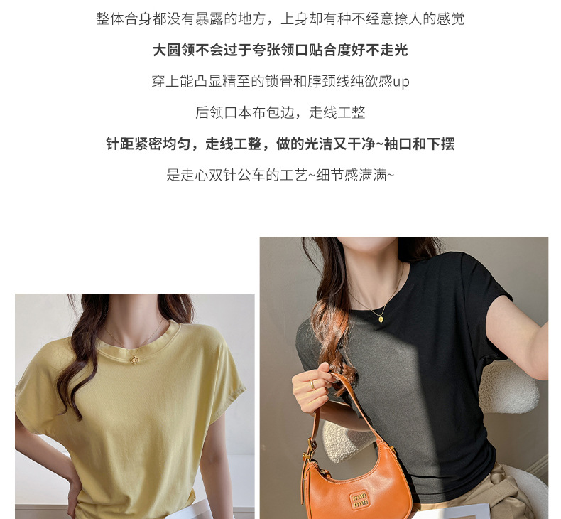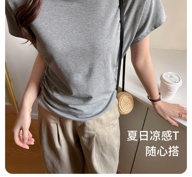 라운드넥 솔리드 컬러 캐주얼 다재다능한 루즈한 레이지 스타일 오른쪽 어깨 반팔 티셔츠 여성용 디자인 이너 레이어링 탑스토어 가기