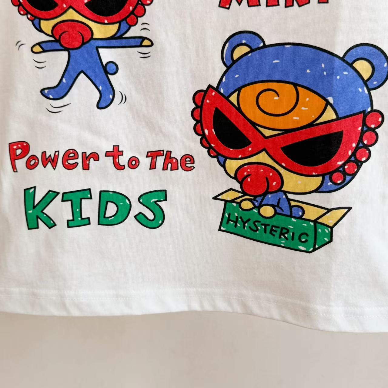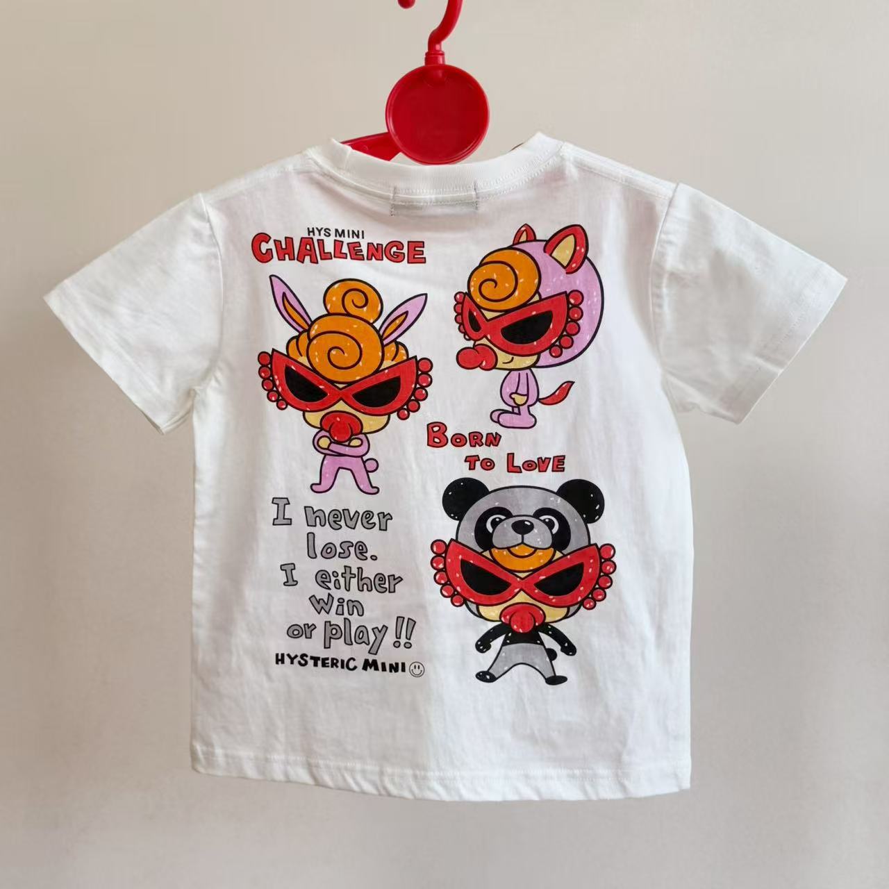 25 여름 새로운 대외 무역 아동복 젖꼭지 블랙 슈퍼 만화 면 티셔츠 일본 패션 브랜드 스트라이프 짧은 소매 공장 도매스토어 가기