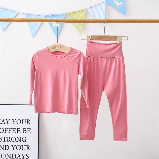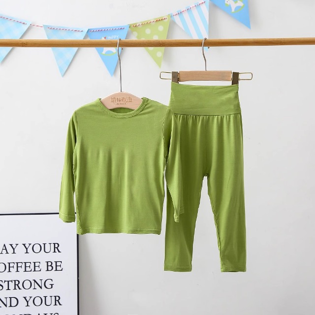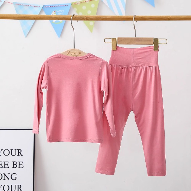 아동 잠옷 모달 봄, 가을 하이 웨이스트 배꼽 보호 가정복 소년 소녀 아기 가을 옷과 긴 바지 속옷 세트
