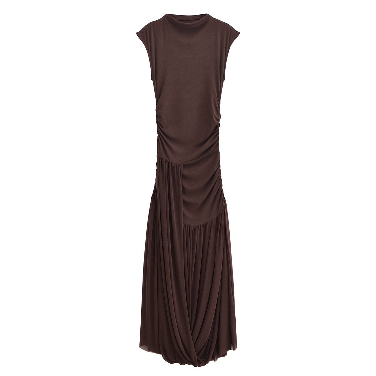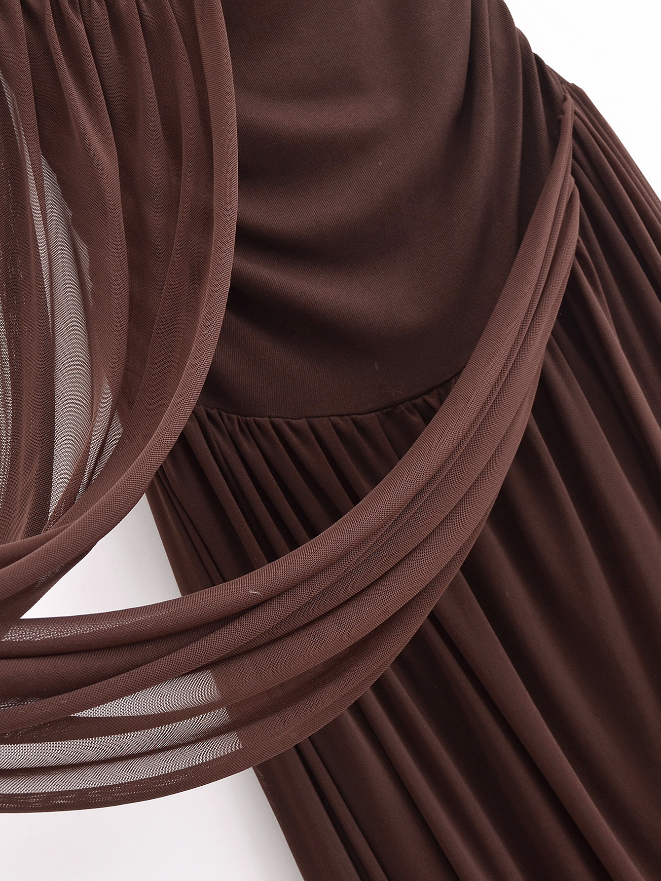11320TWXQP 25 봄 신작 유럽과 미국의 국경 간 여성 스트리트 패션 실크 메쉬 스플 라이스 민소매 드레스
