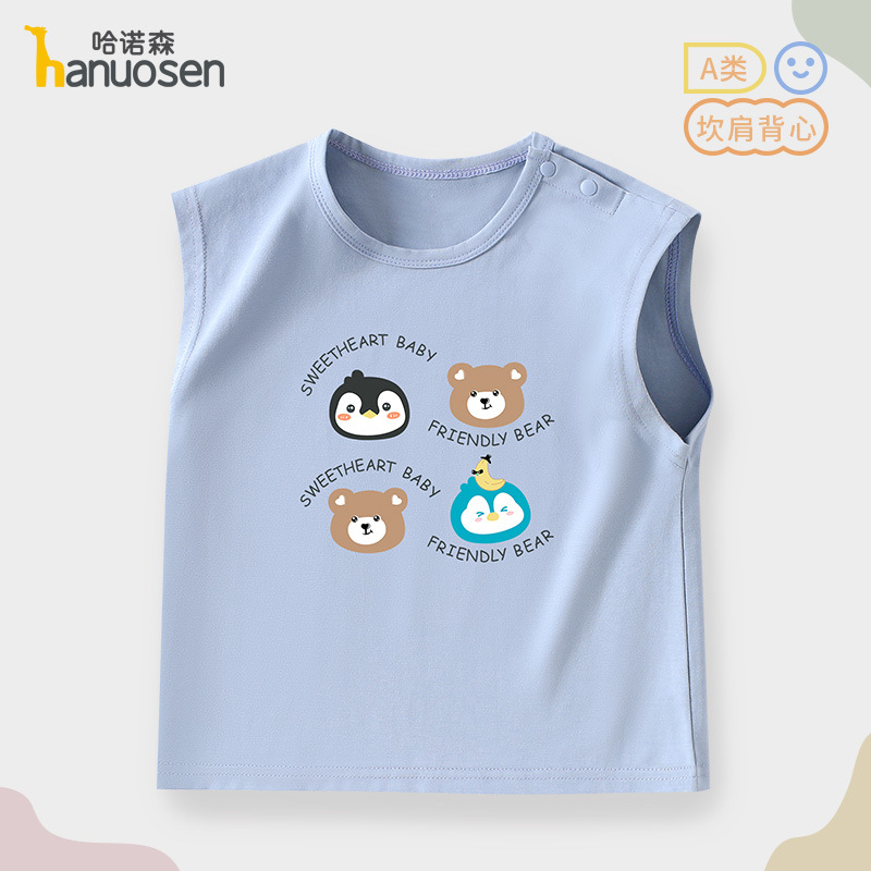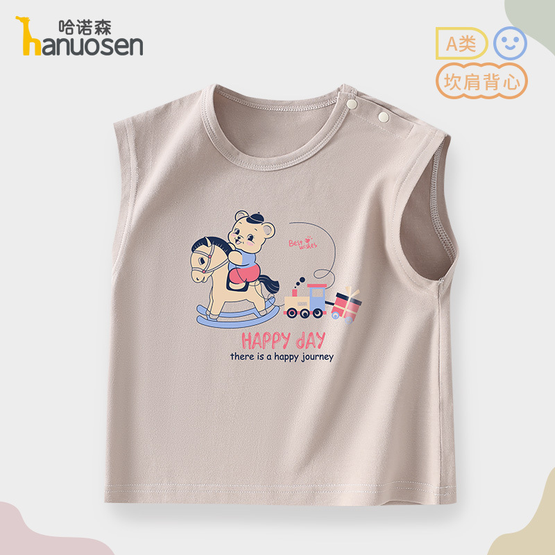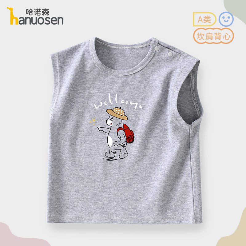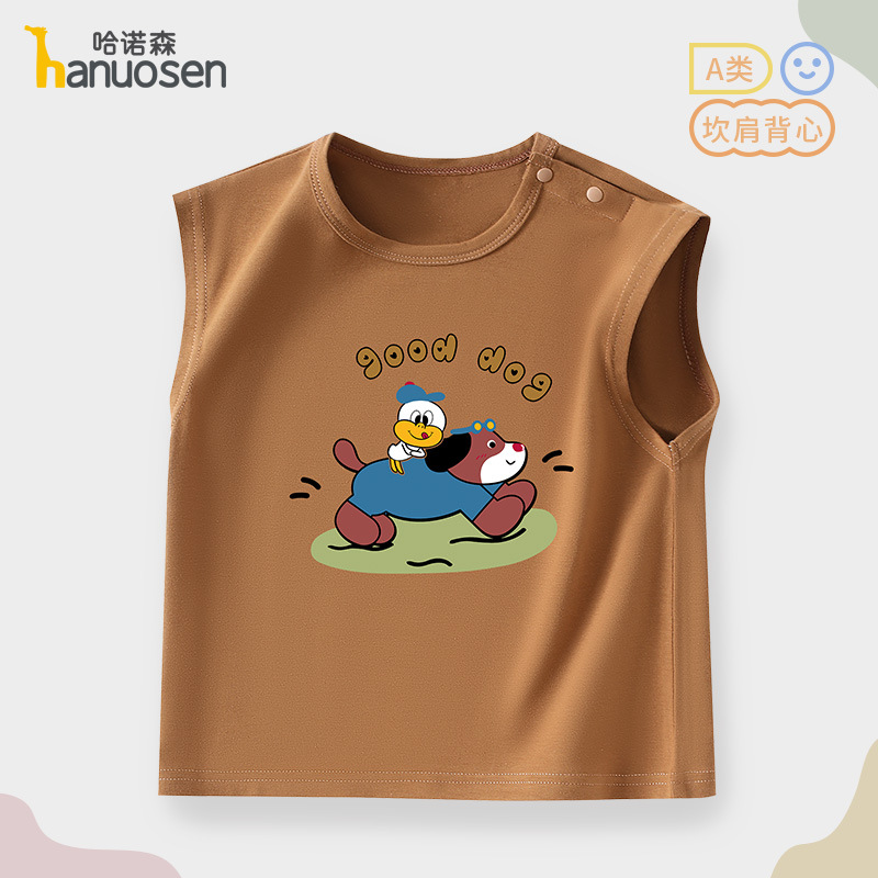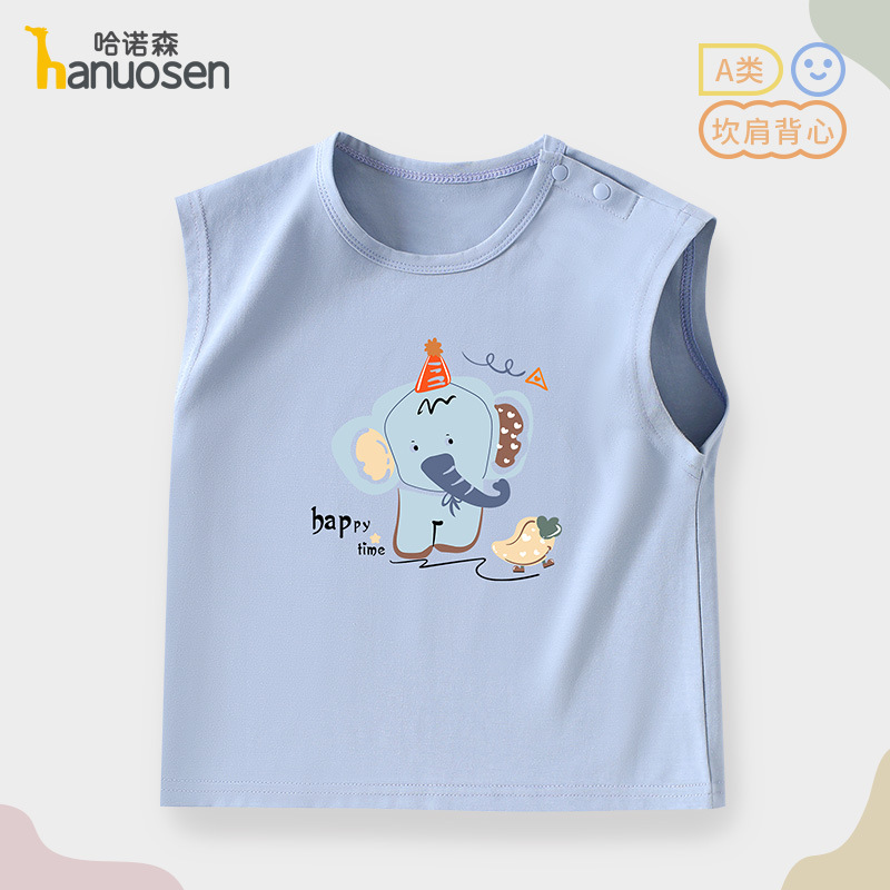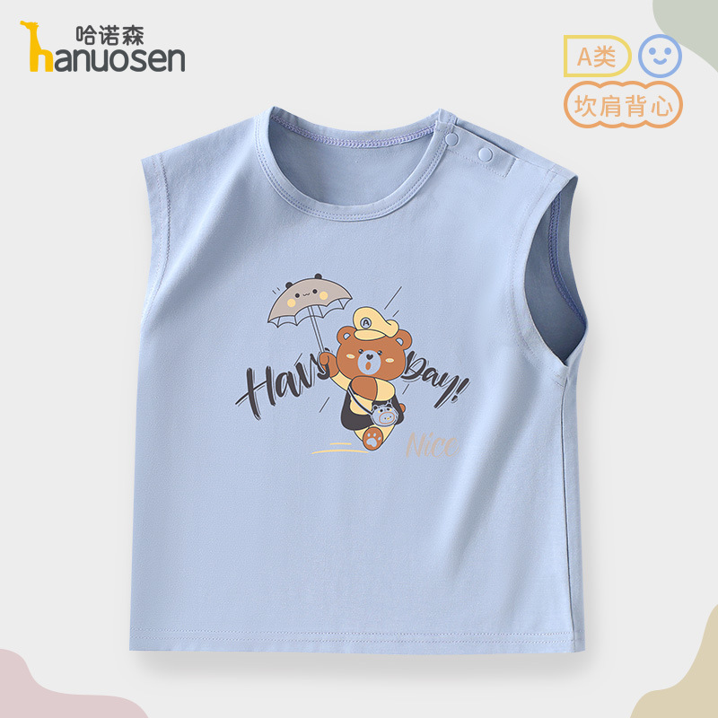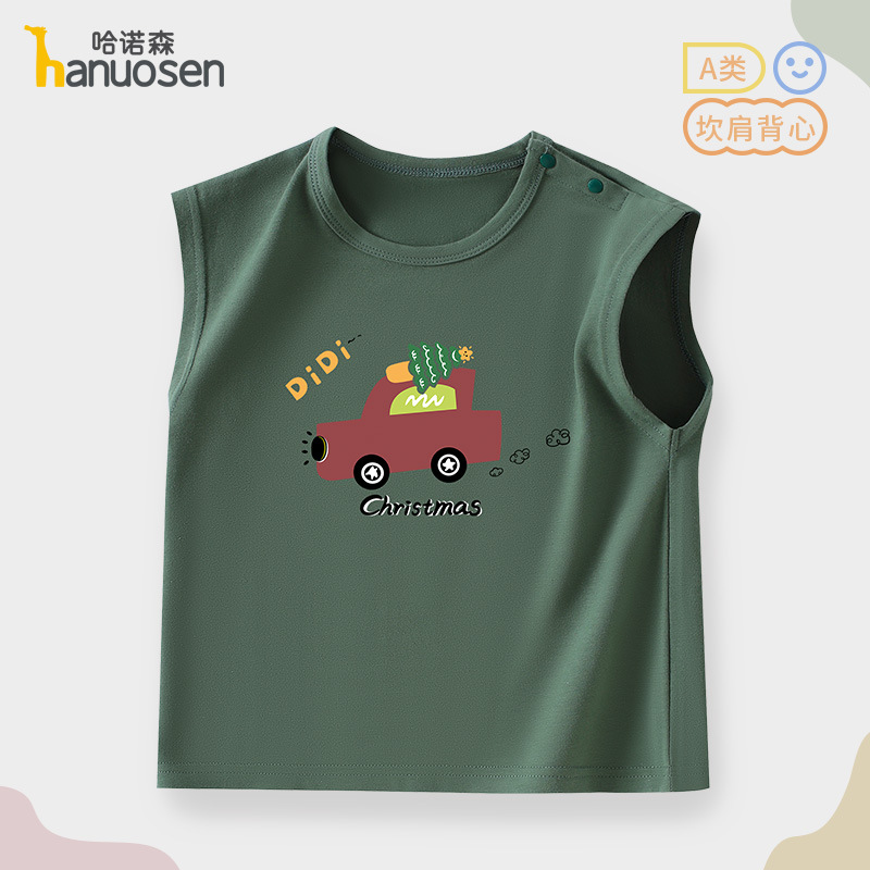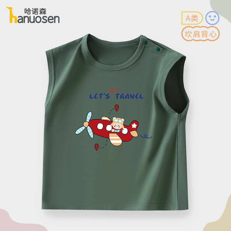 소년 조끼 여름 민소매 티셔츠 2025 새로운 아기 귀여운 순수 코튼 어린이 조끼 탑 아기 옷스토어 가기