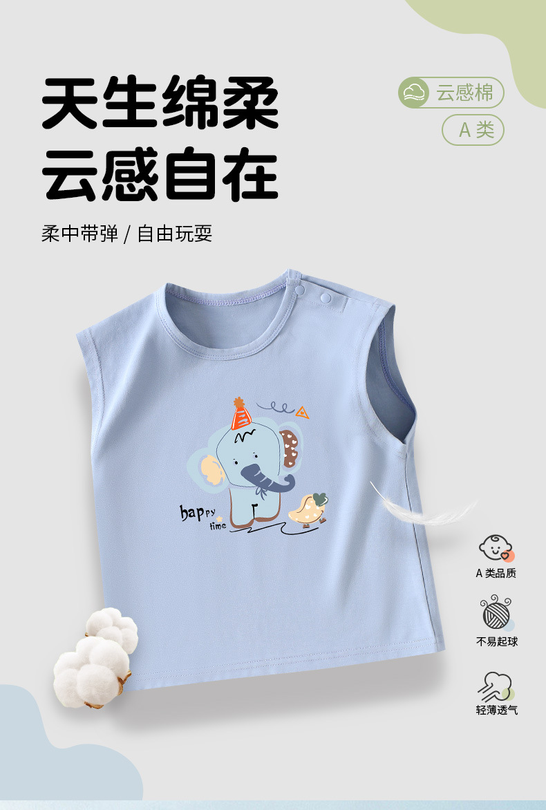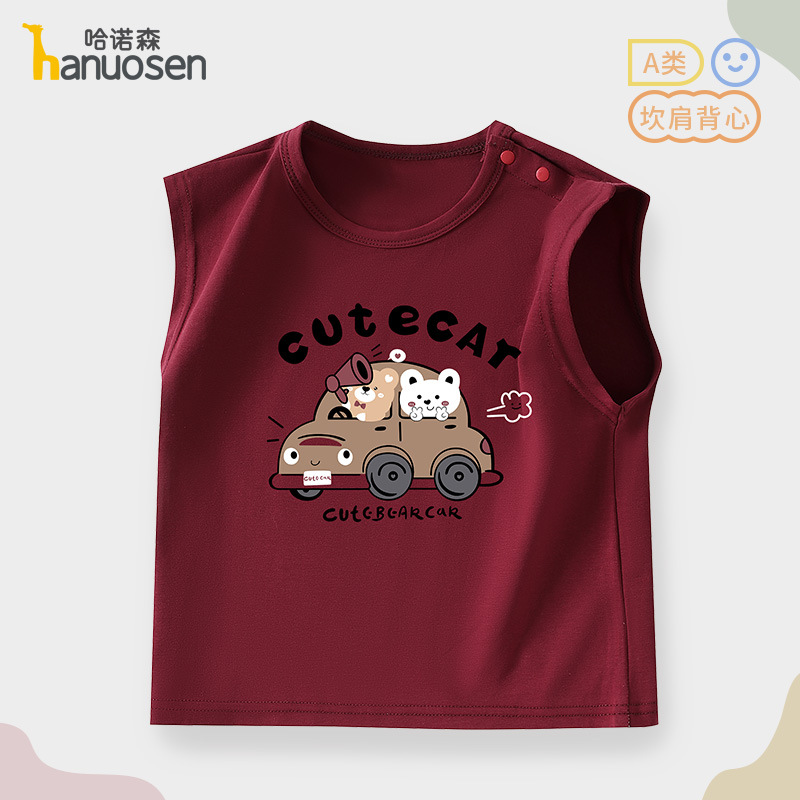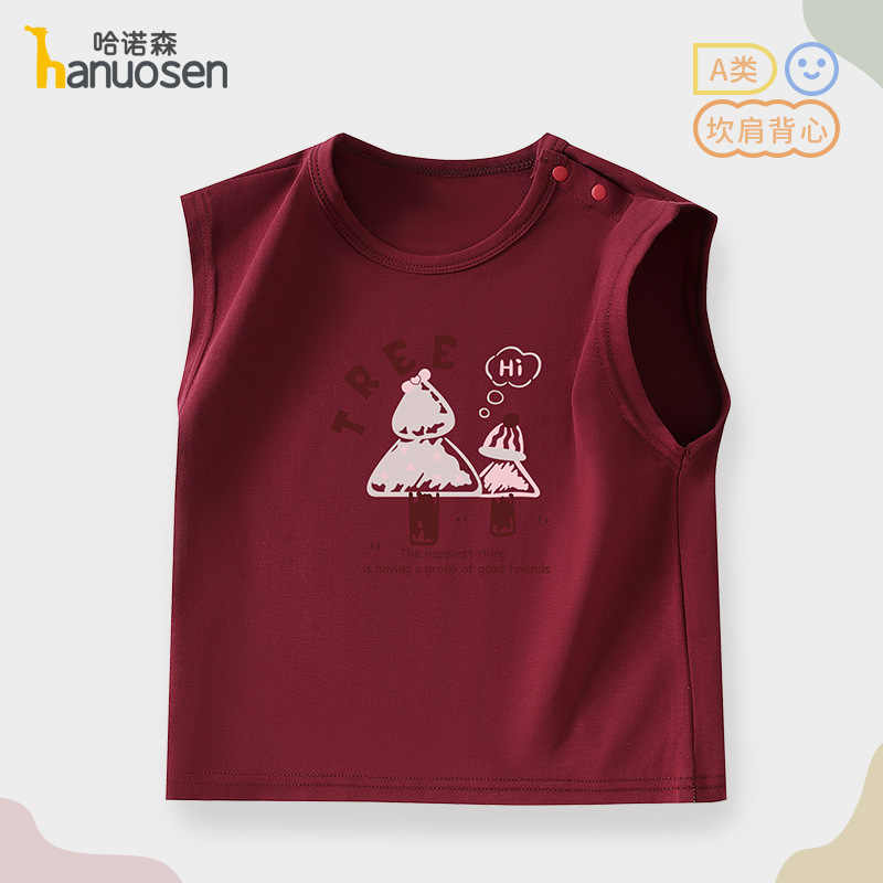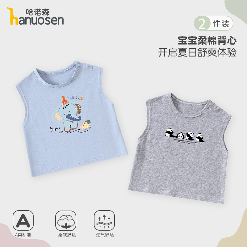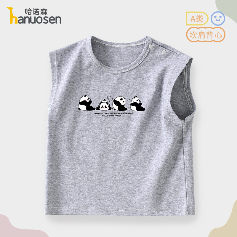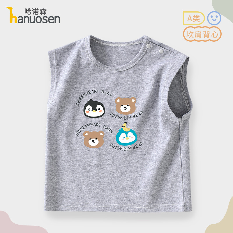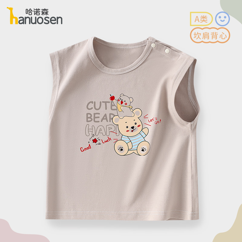 소년 조끼 여름 민소매 티셔츠 2025 새로운 아기 귀여운 순수 코튼 어린이 조끼 탑 아기 옷스토어 가기