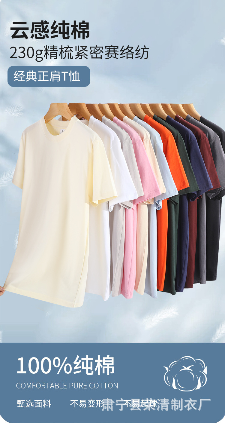 여름 헤비급 230g 코튼 티셔츠 남성 어깨 단색 바닥 셔츠 짧은 소매 애호가 패션 브랜드 의류 반소매