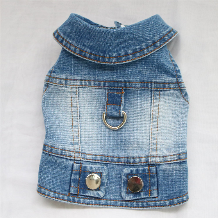 중소형 개와 고양이를 위한 견인 고리가 있는 크로스보더 핫셀링 애완동물 데님 조끼, 개 재킷, 봄, 여름, 가을, 겨울 의류