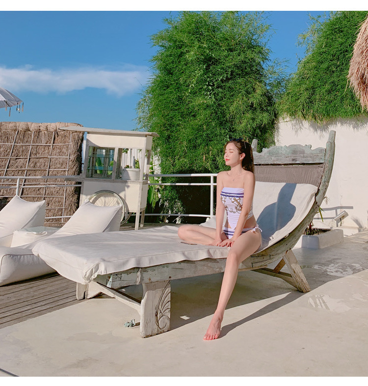厂家新款水手风比基尼性感美背时尚图案分体三角泳衣女bikini