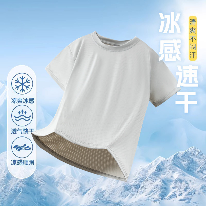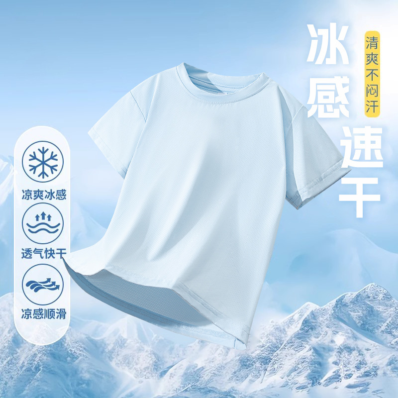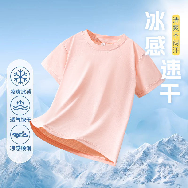 도매 2025 아이스 실크 빠른 건조 옷 단색 아동복 소년 메쉬 짧은 소매 중형 및 대형 어린이 여름 소녀 스포츠 얇은스토어 가기