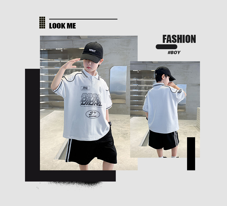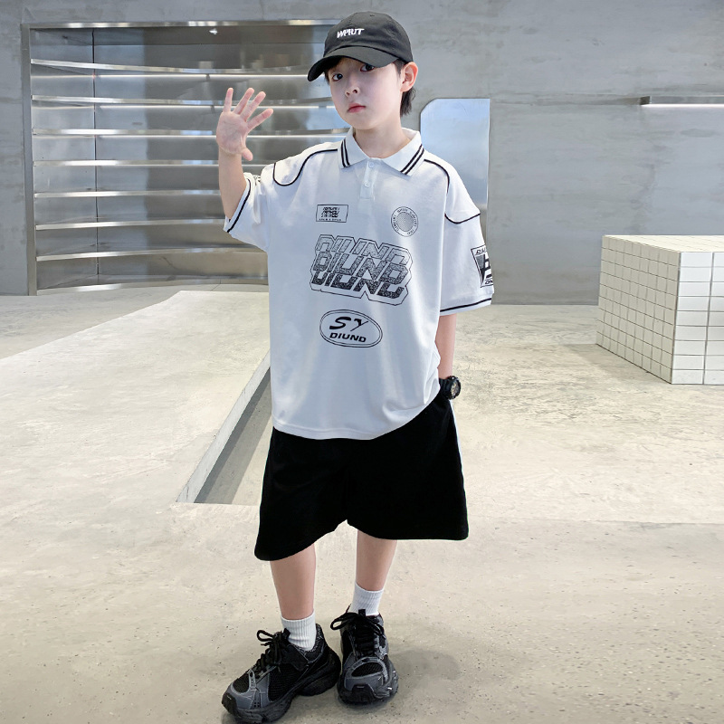 여름 소년 짧은 소매 티셔츠 아동복 키즈 소년 편지 폴로 셔츠 T 맞춤형 십대 반바지 셔츠 크로스 테두리스토어 가기