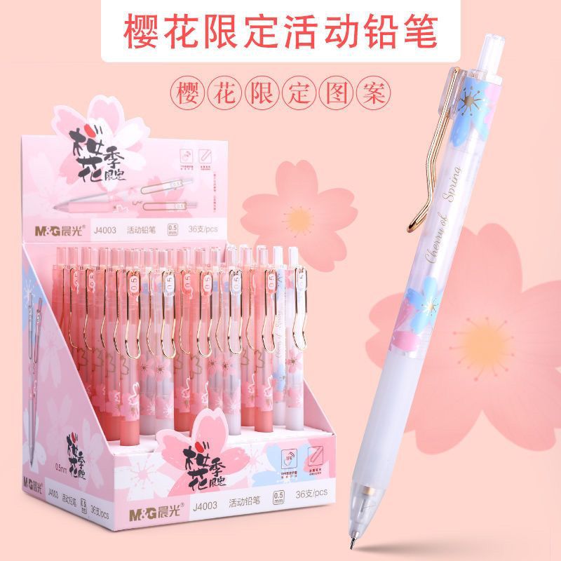 아침 햇살 벚꽃 시즌 샤프 펜슬 0.5mm 작은 신선한 학생 시험 자동 연필 그림 AMPJ4003스토어 가기