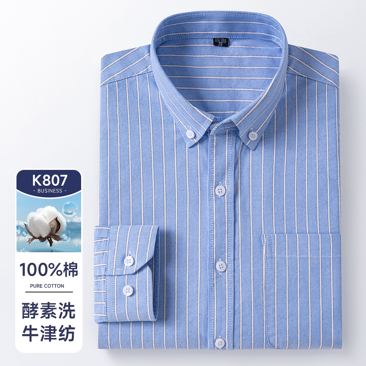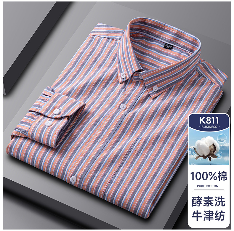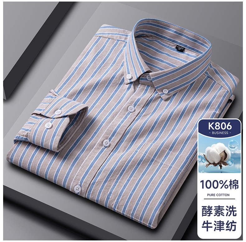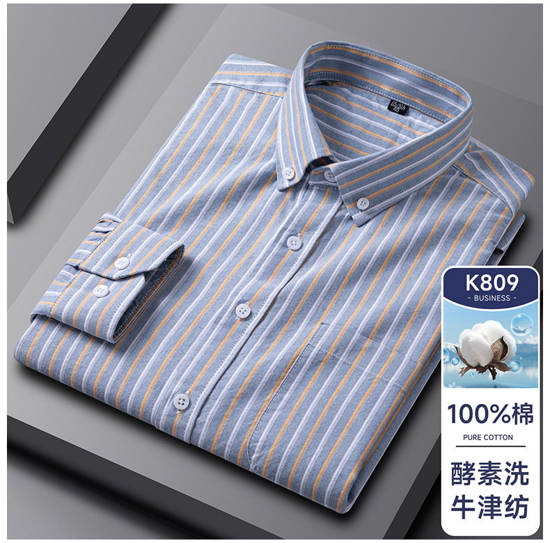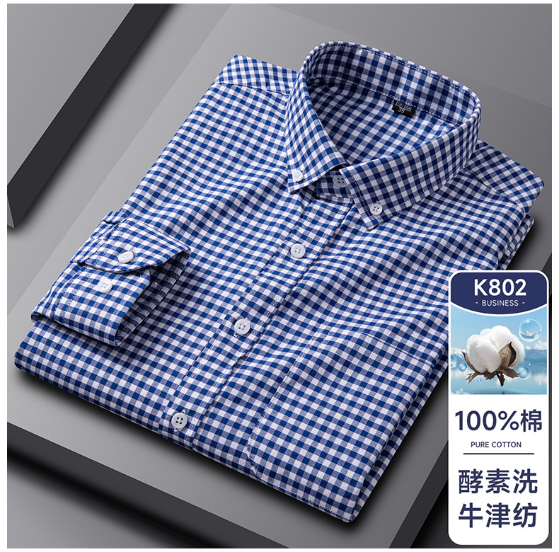 뉴 코튼 남성 캐주얼 비즈니스 긴팔 셔츠 효소 워시 옥스포드 체크 무늬 셔츠 봄과 가을 하이 엔드 센스스토어 가기
