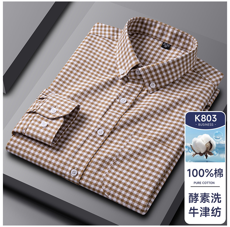 뉴 코튼 남성 캐주얼 비즈니스 긴팔 셔츠 효소 워시 옥스포드 체크 무늬 셔츠 봄과 가을 하이 엔드 센스