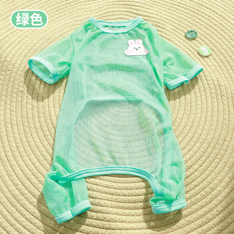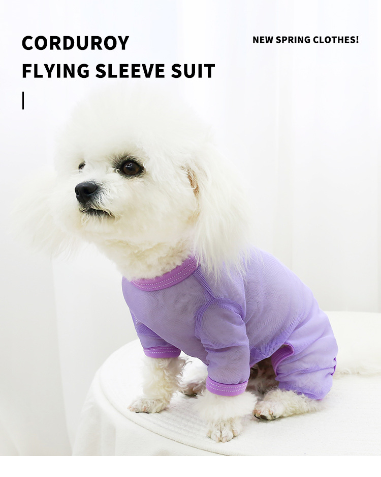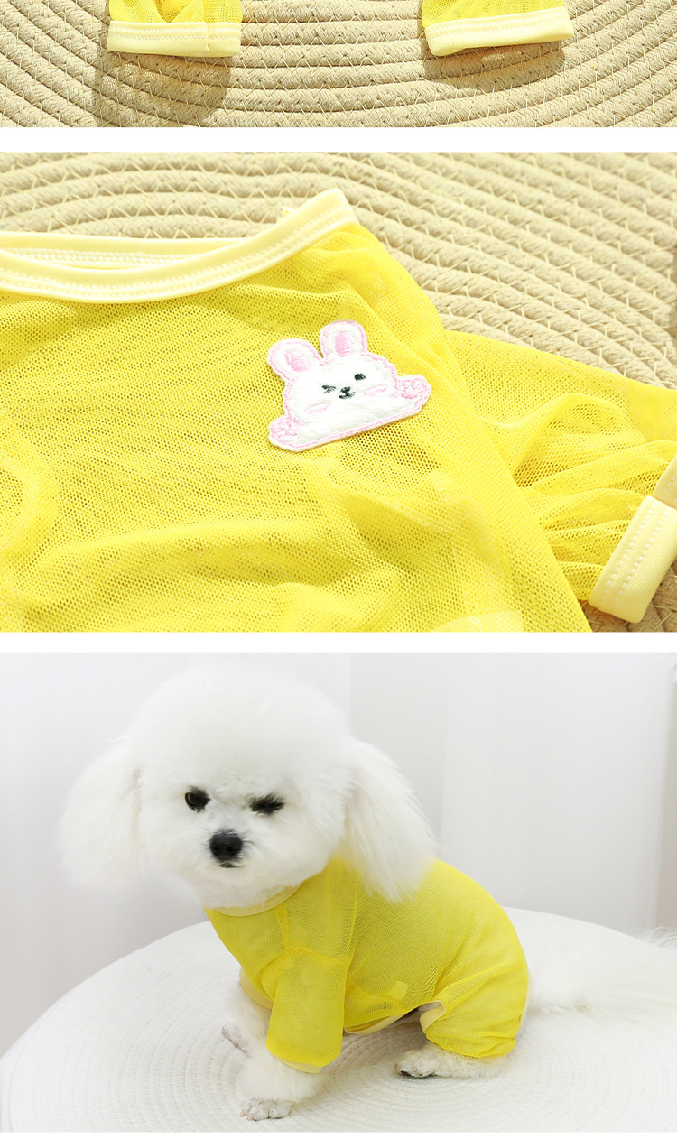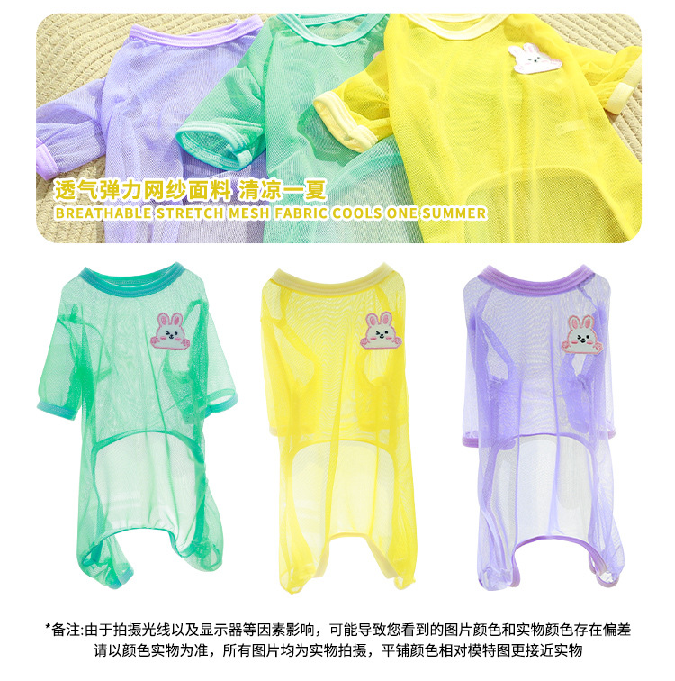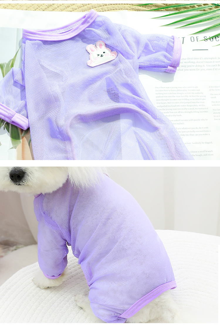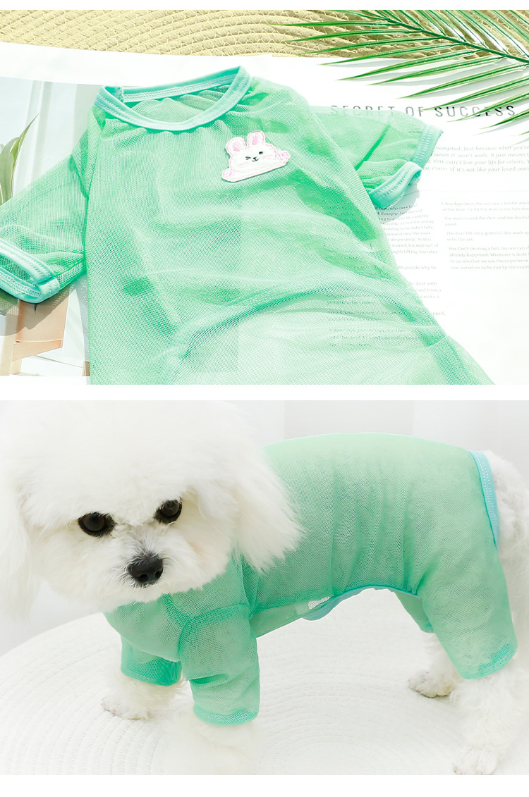 애완 동물 테디 비촌 작은 개 옷 안티 린트 안티 더러운 태양 보호 4 다리 여름 얇은 메쉬 통기성