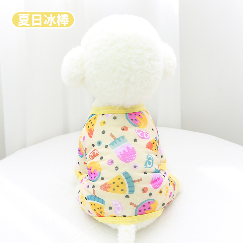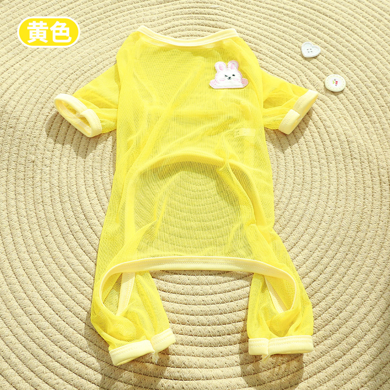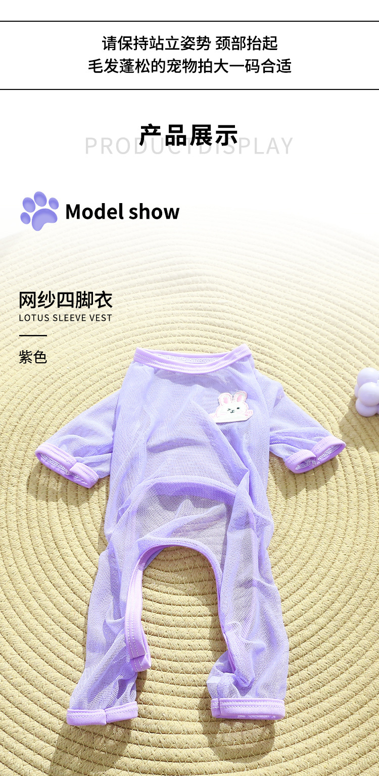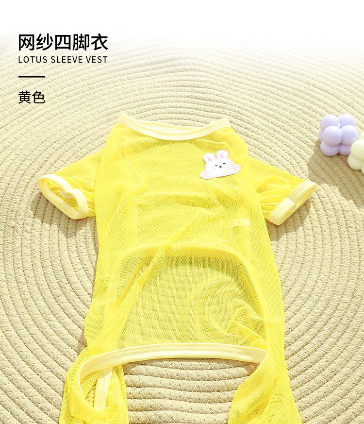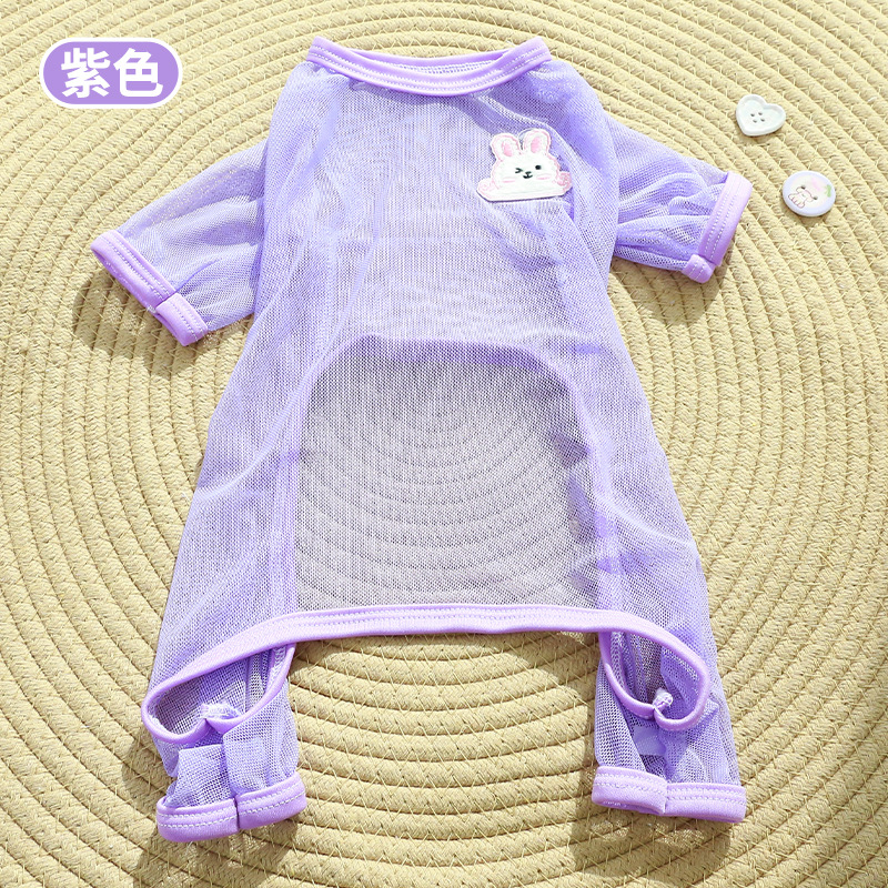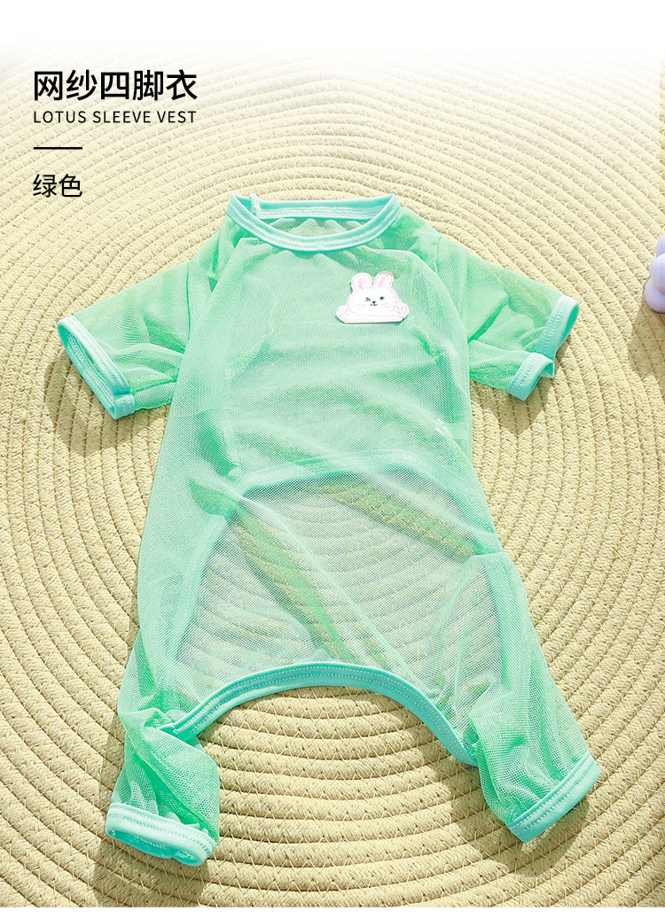 애완 동물 테디 비촌 작은 개 옷 안티 린트 안티 더러운 태양 보호 4 다리 여름 얇은 메쉬 통기성