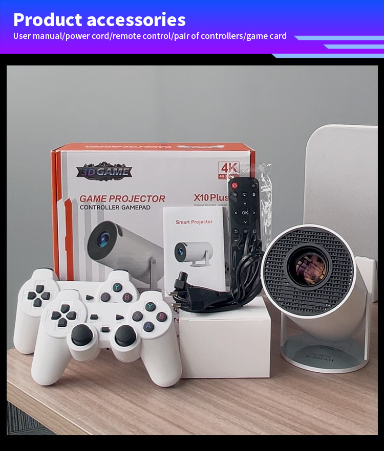 2025년 새로운 스마트 프로젝터 + 듀얼 무선 핸들 + 대용량 게임 카드 홈 휴대용 휴대용 게임 콘솔