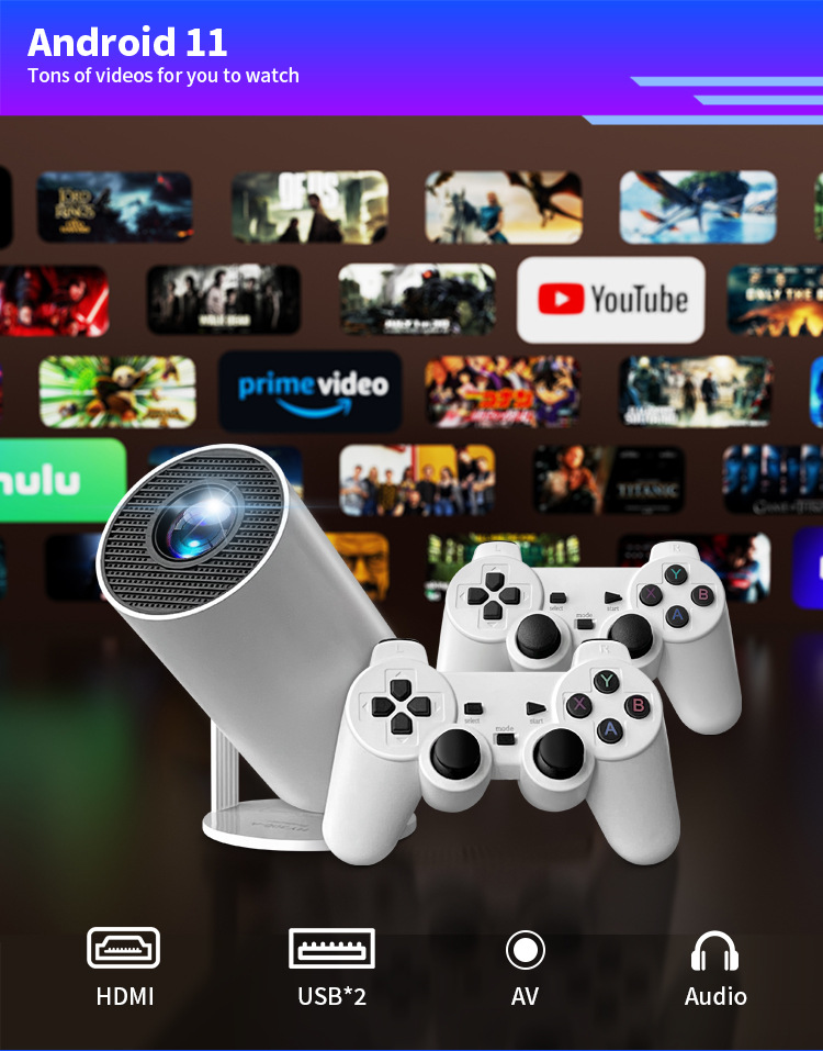 2025년 새로운 스마트 프로젝터 + 듀얼 무선 핸들 + 대용량 게임 카드 홈 휴대용 휴대용 게임 콘솔스토어 가기