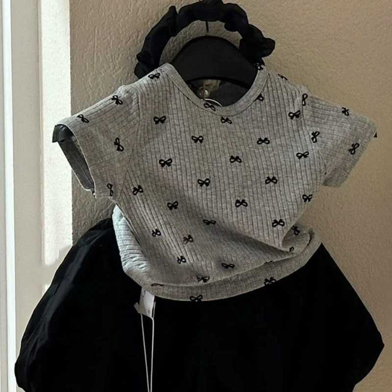 시안 닝 세븐 아동복 어린이 여름 최고 25 새 스타일 소녀의 꽃 크루 넥 짧은 소매 티셔츠 베이스 셔츠 트렌디 T