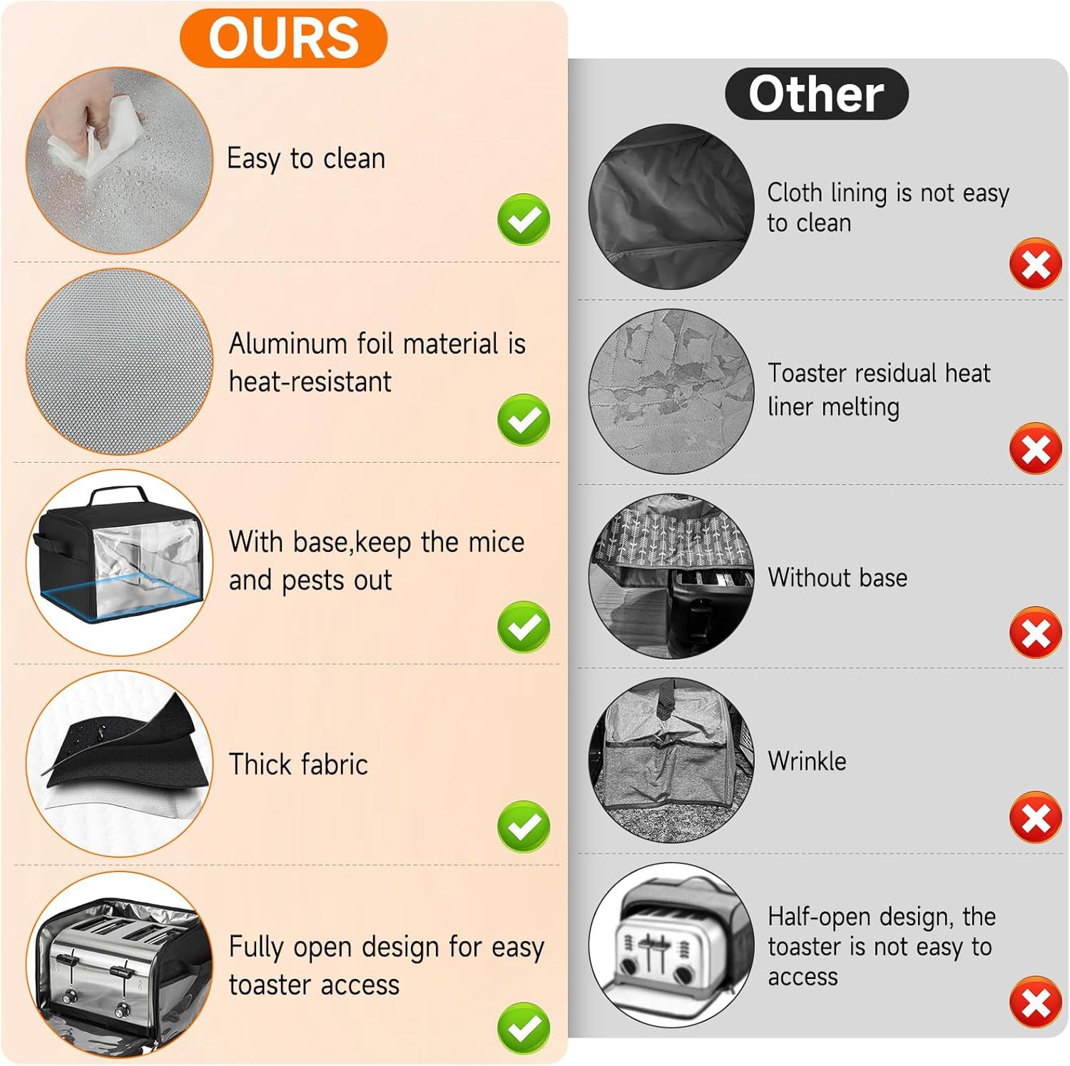 • 带底座:我们的带底座的烤面包机盖可以覆盖整个烤面包机,它可以保护烤面包机免受老鼠、虫子、灰尘和油漆的伤害,可以很好地保护您的烤面包机