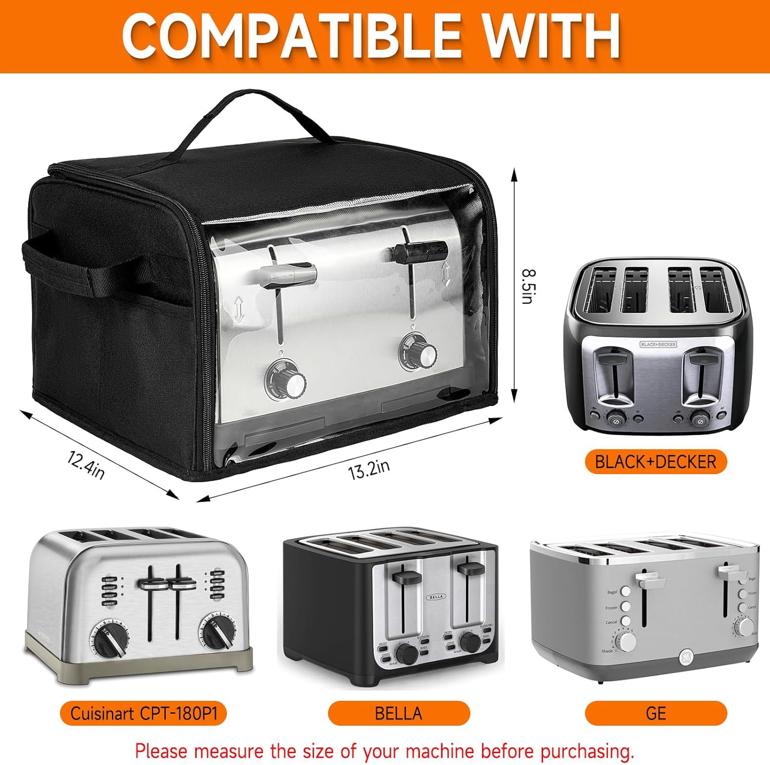 • :尺寸:13.2*12.4*8.5 英寸。这款4片烤面包机盖适合大多数 4 片烤面包机,包括 Cuisinart CPT-180P1、BELLA / GE 4 切片烤面包机,请在购买前测量您的机器尺寸