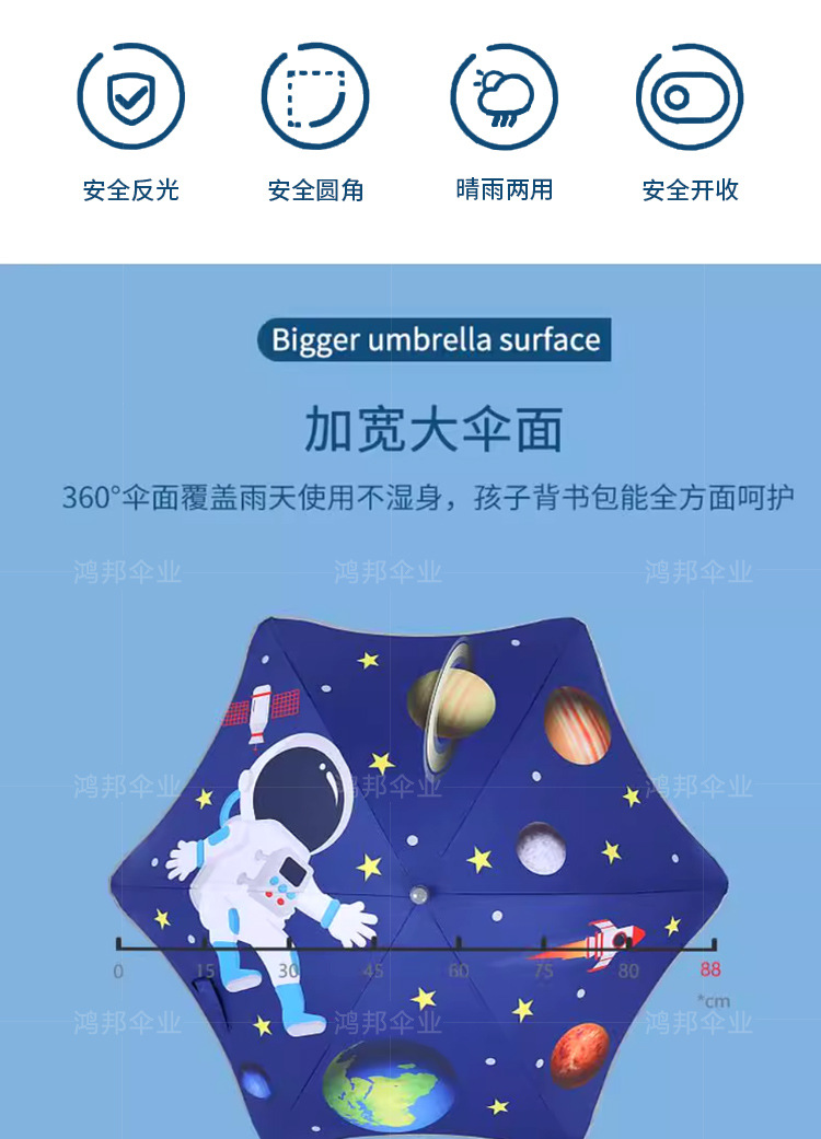 어린이 우산, 둥근 모서리, 충돌 방지, 큰 어린이 우산, 초등학생 비닐 이중 목적 만화 우산, 곡선 후크 우산, 광고 우산, 로고 인쇄