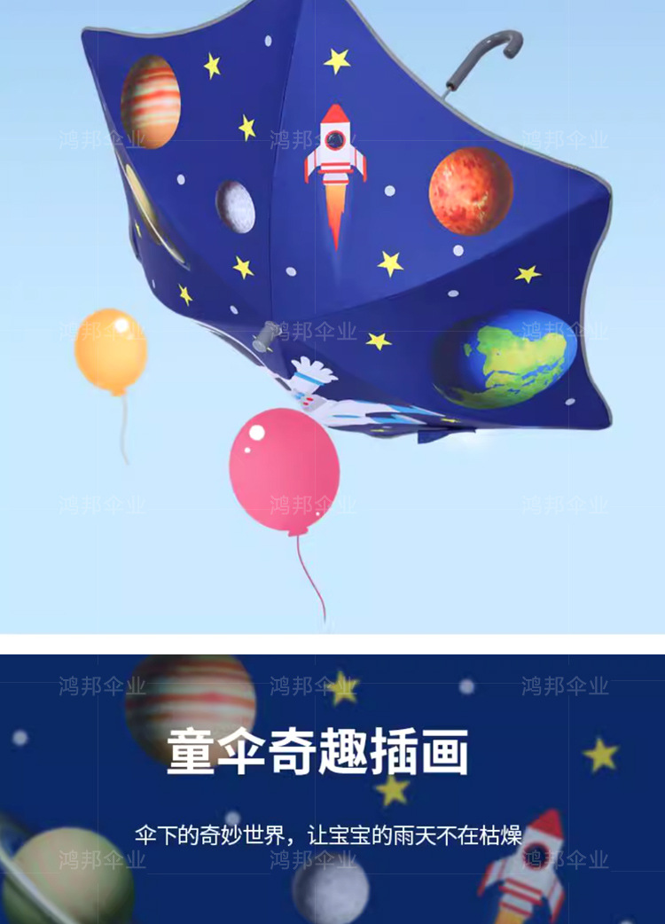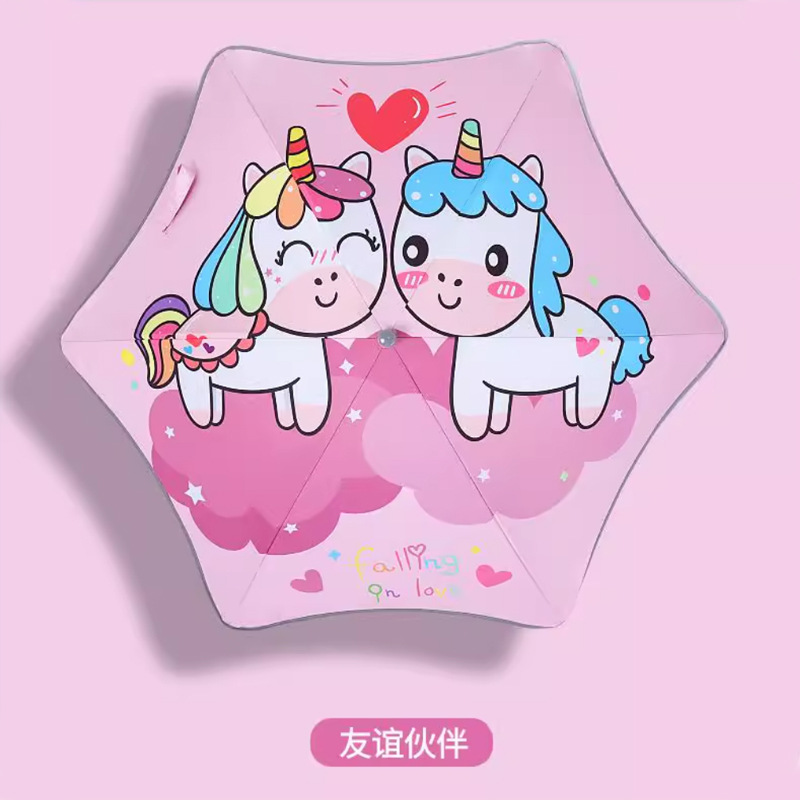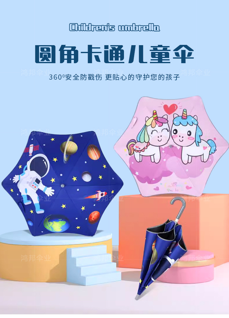 어린이 우산, 둥근 모서리, 충돌 방지, 큰 어린이 우산, 초등학생 비닐 이중 목적 만화 우산, 곡선 후크 우산, 광고 우산, 로고 인쇄스토어 가기