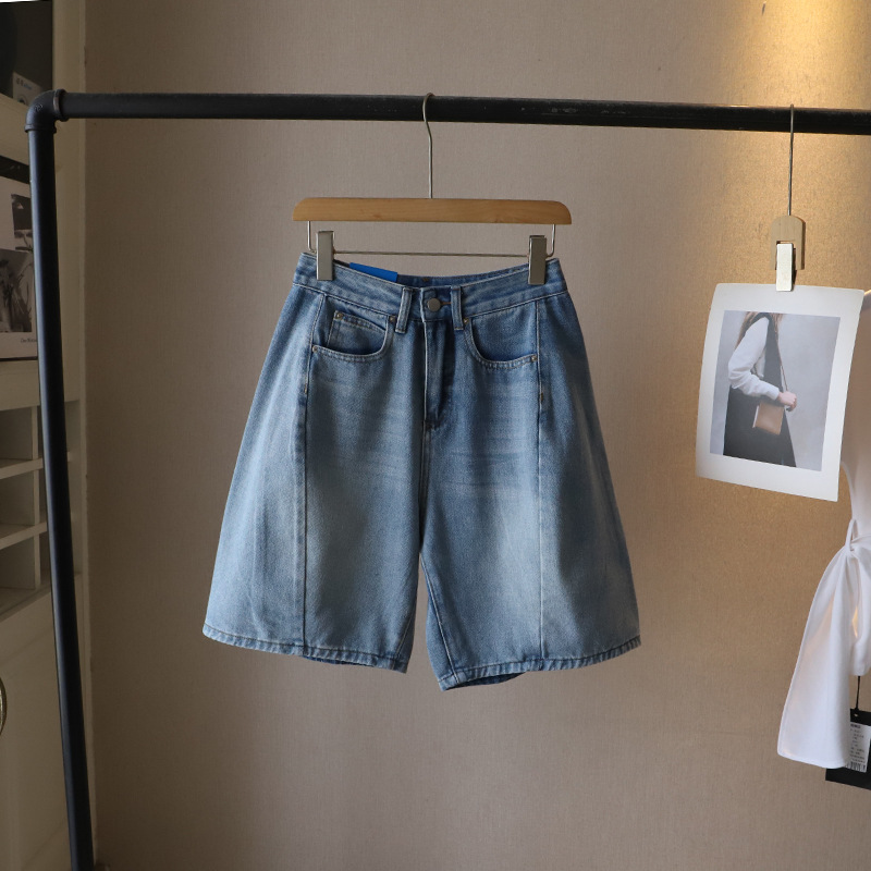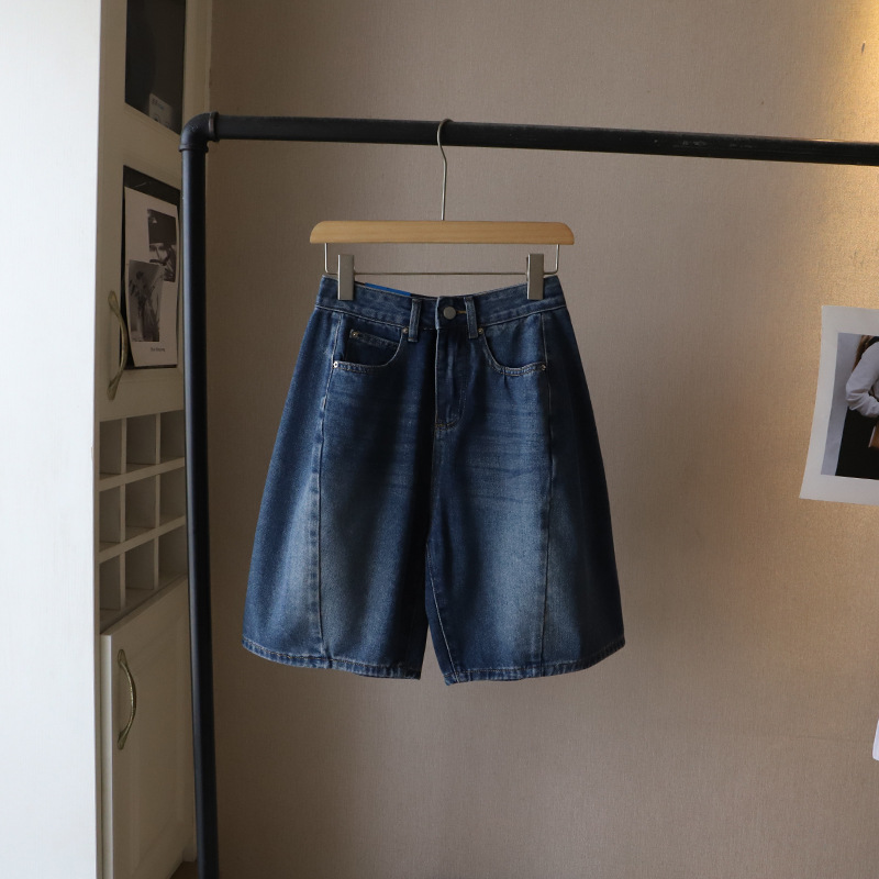 [비정] 2025년 여름 신상품 한국 스타일 레트로 데님 5부 중간 길이 반바지 여성용 큰 사이즈 반바지 3813스토어 가기