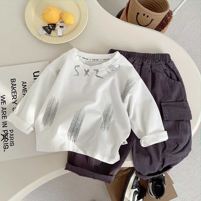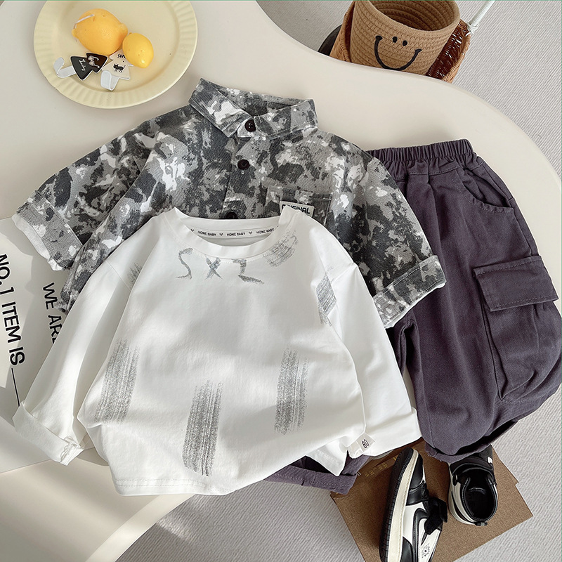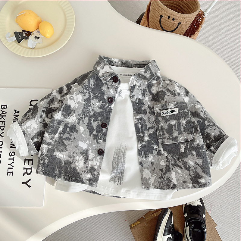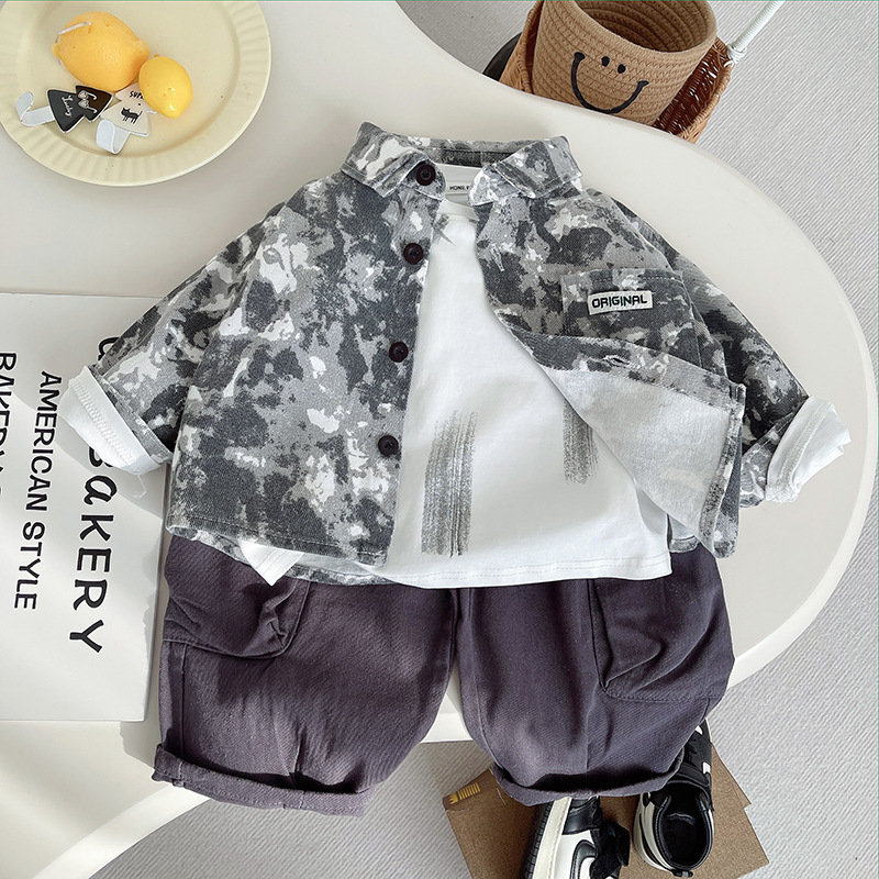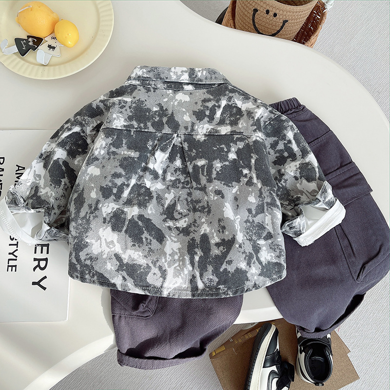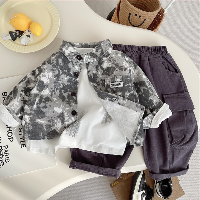 소년 봄 정장 새로운 한국 스타일 아동 의류 아동 스타일 타이 염색 셔츠 재킷 캐주얼 바지 3 피스 세트