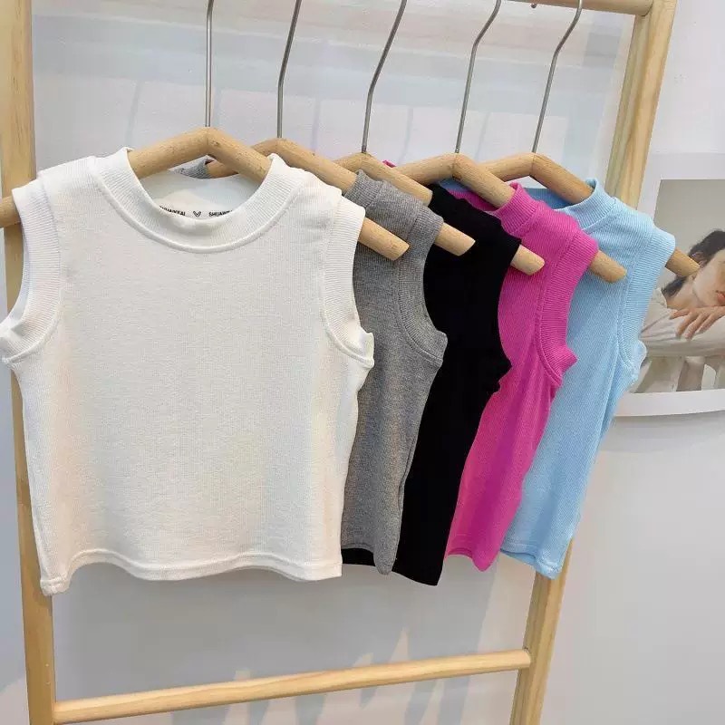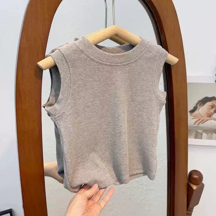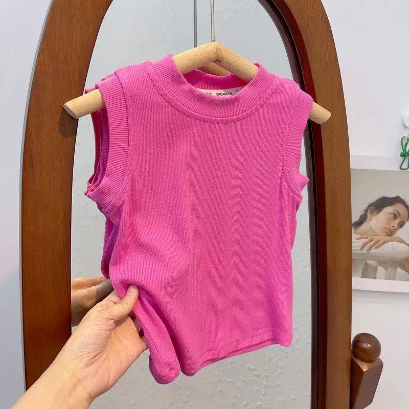 여자 조끼 2025 여름 새로운 어린이 스트레치 민소매 탑 솔리드 컬러 슬링 아기 소녀베이스 셔츠 외부 착용스토어 가기
