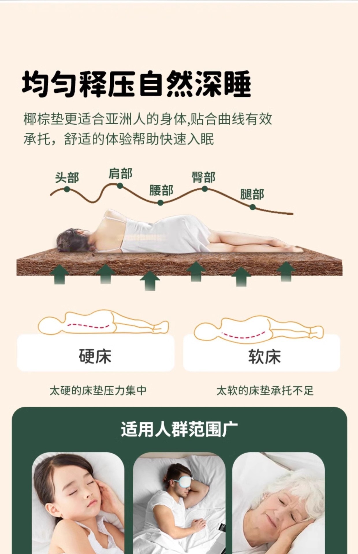 1 인 다크 브라운 매트 매트리스 호텔 홈스테이 천연 코코넛 팜 매트리스 하드 매트 접는 가정용 대여 다다미 매트리스스토어 가기