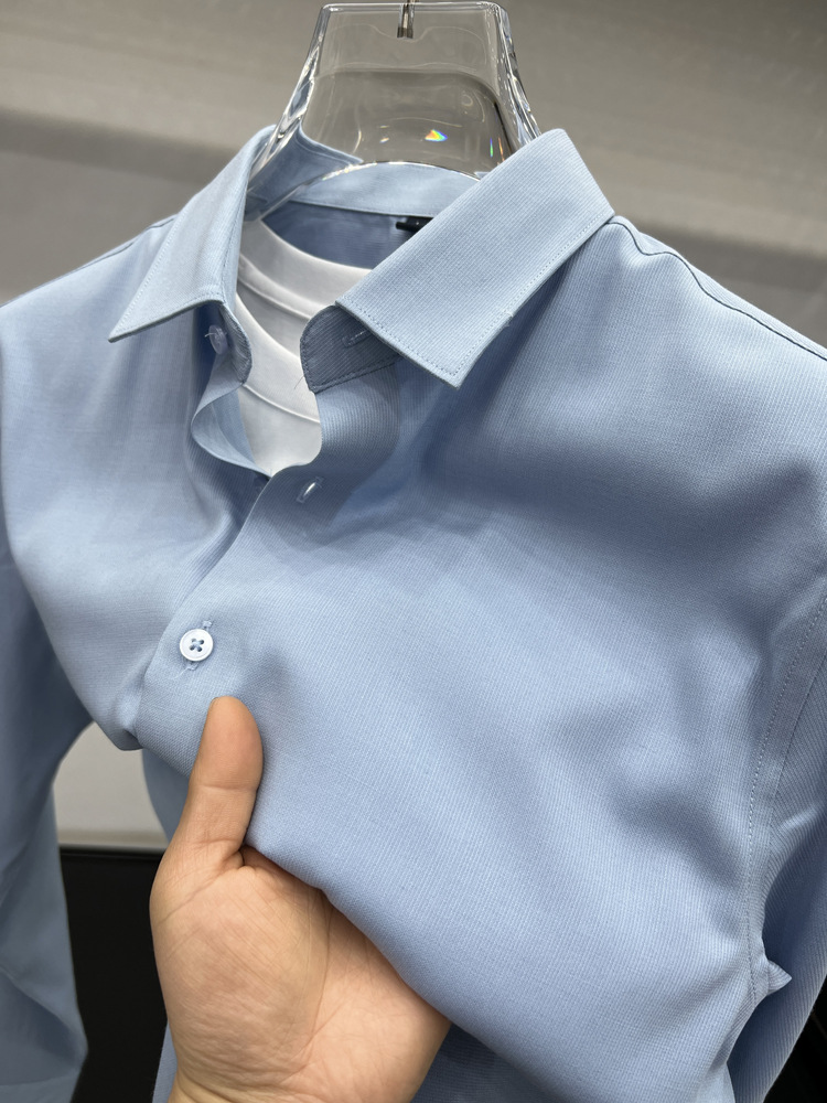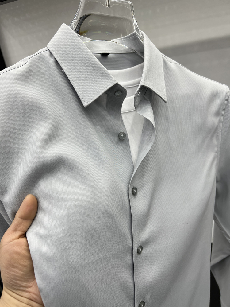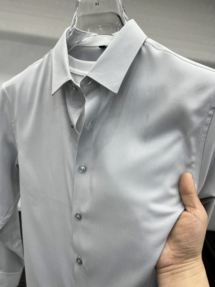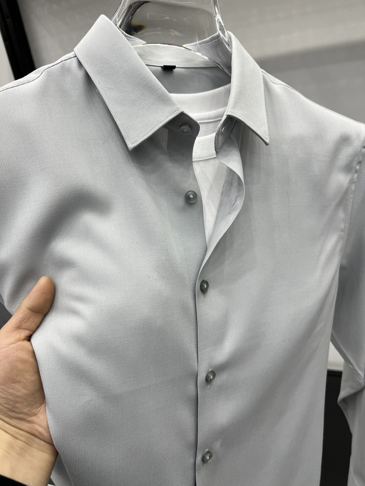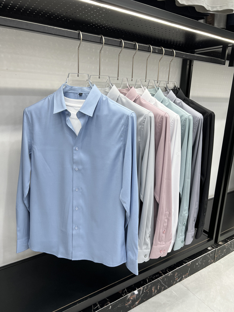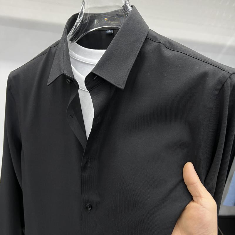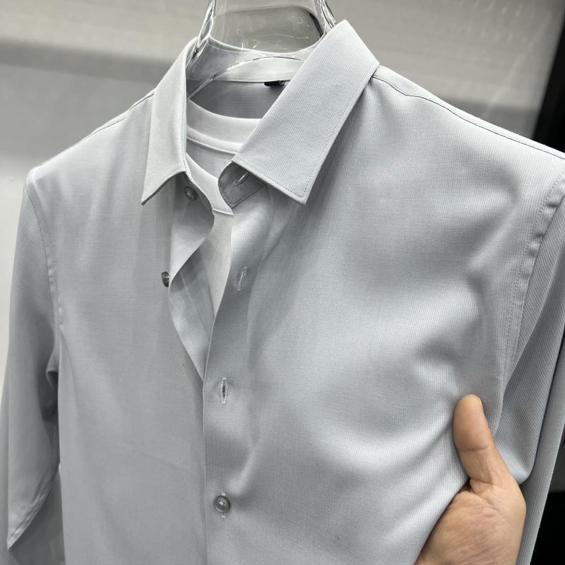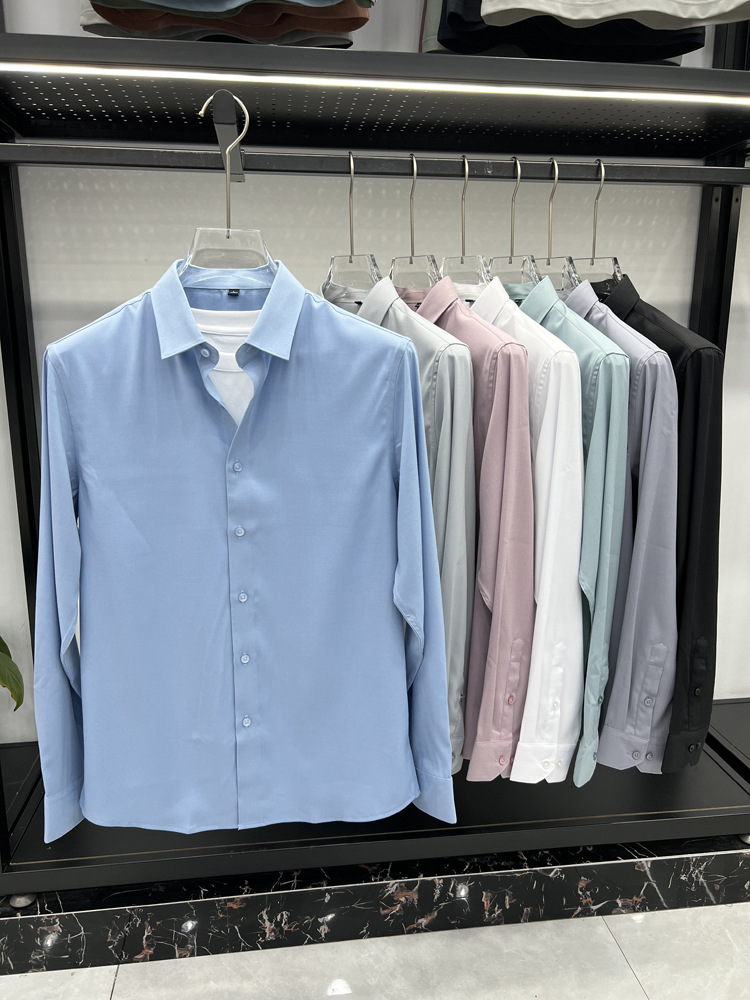 하이 엔드 비즈니스 셔츠 남성용 긴팔 봄과 가을 얇은 단색 주름 방지 비 다림질 인치 의류 남성용 뽕나무 실크 셔츠 작업스토어 가기