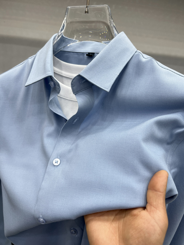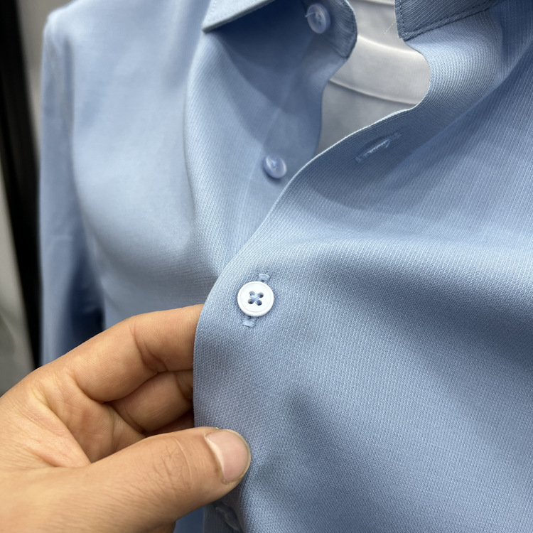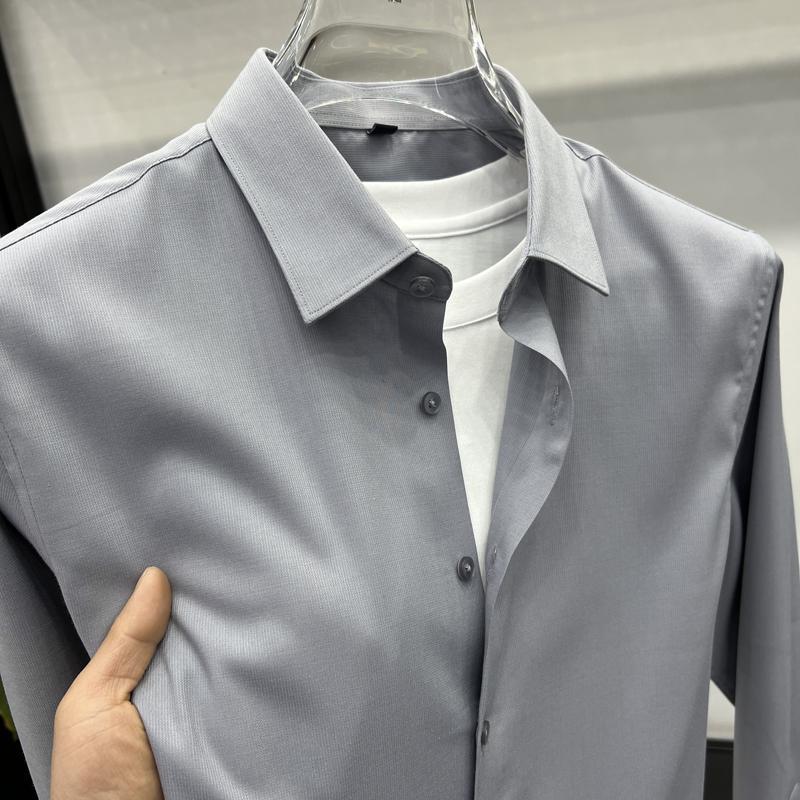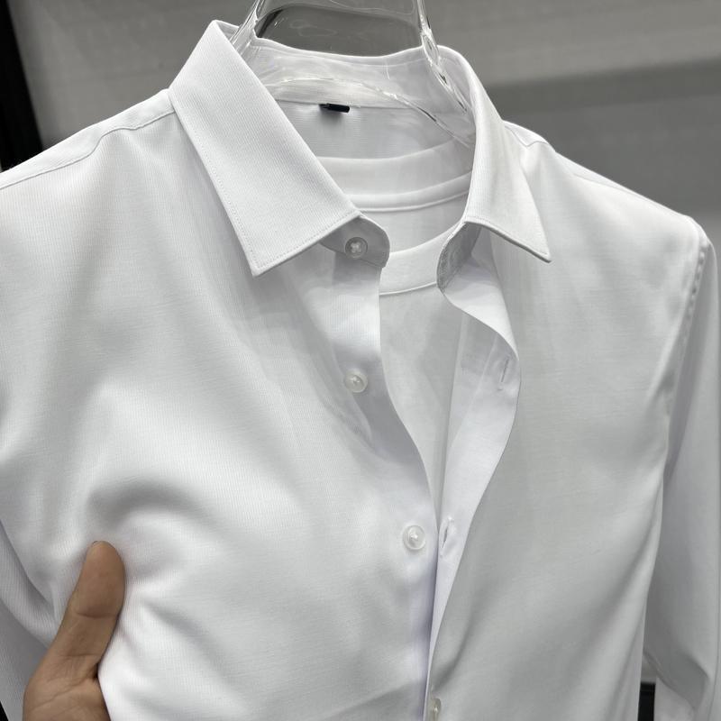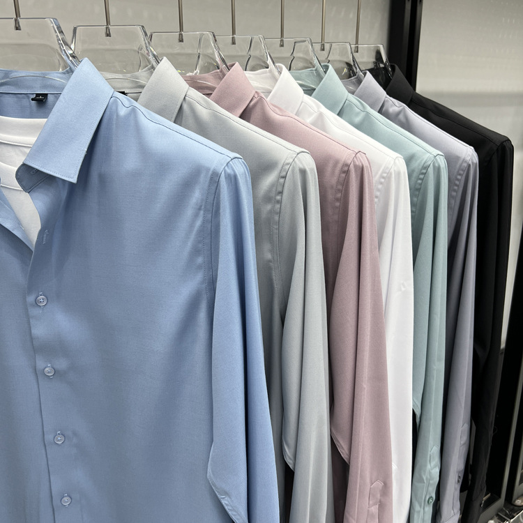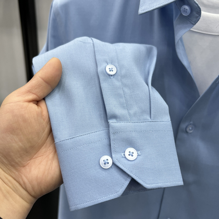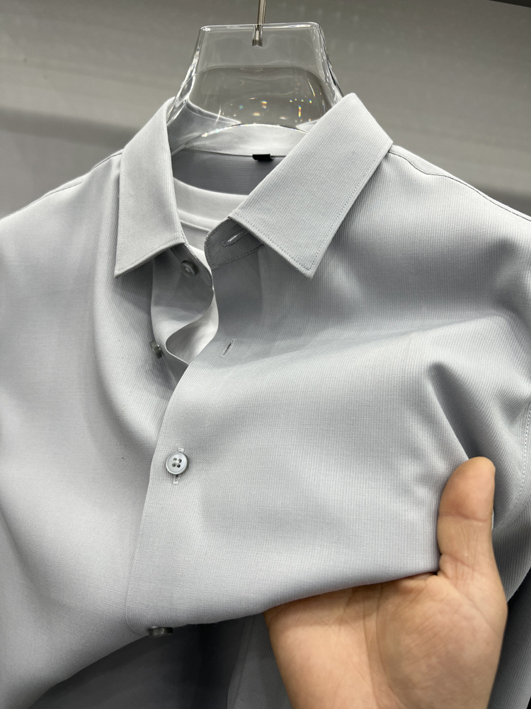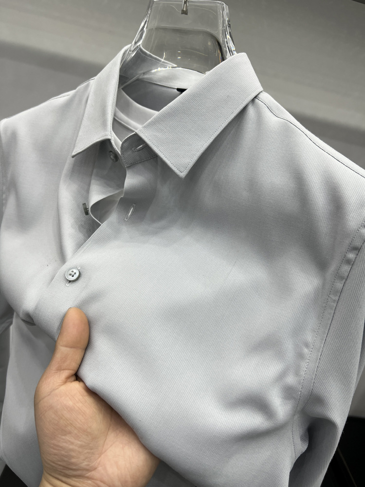 하이 엔드 비즈니스 셔츠 남성용 긴팔 봄과 가을 얇은 단색 주름 방지 비 다림질 인치 의류 남성용 뽕나무 실크 셔츠 작업스토어 가기