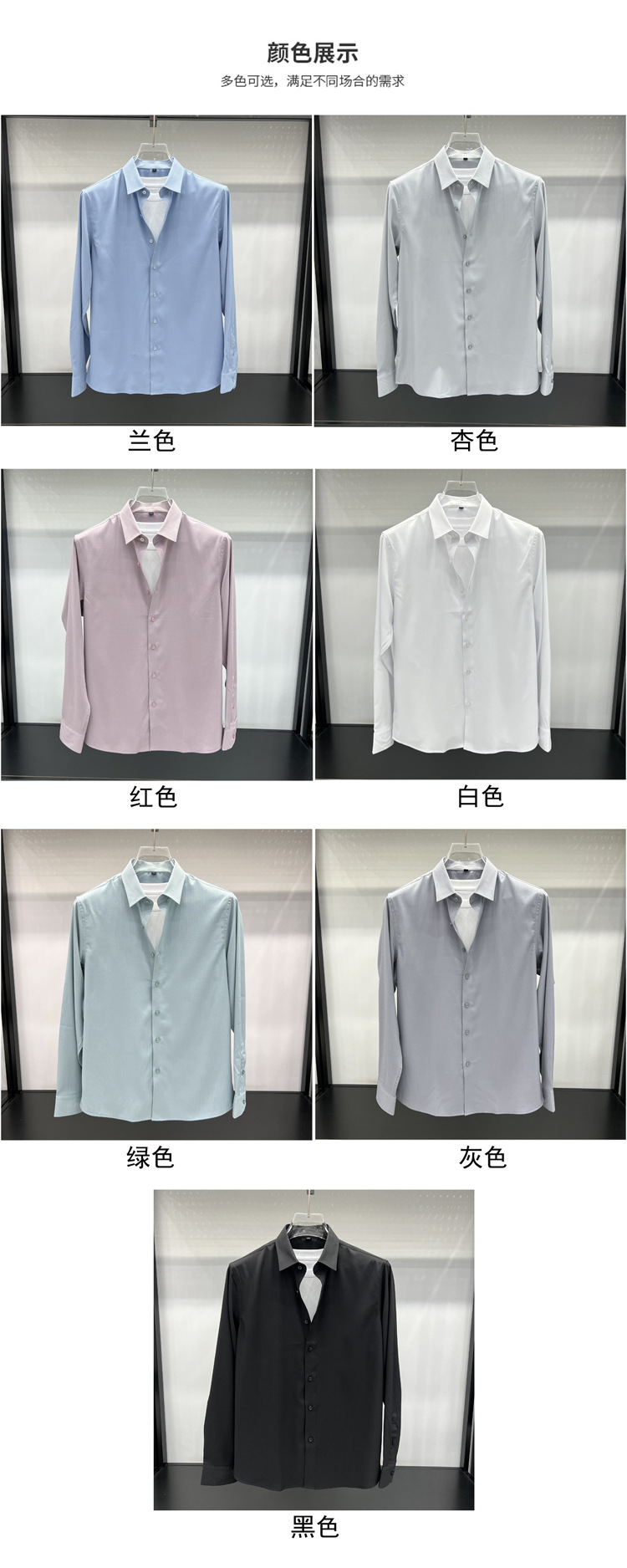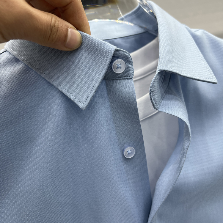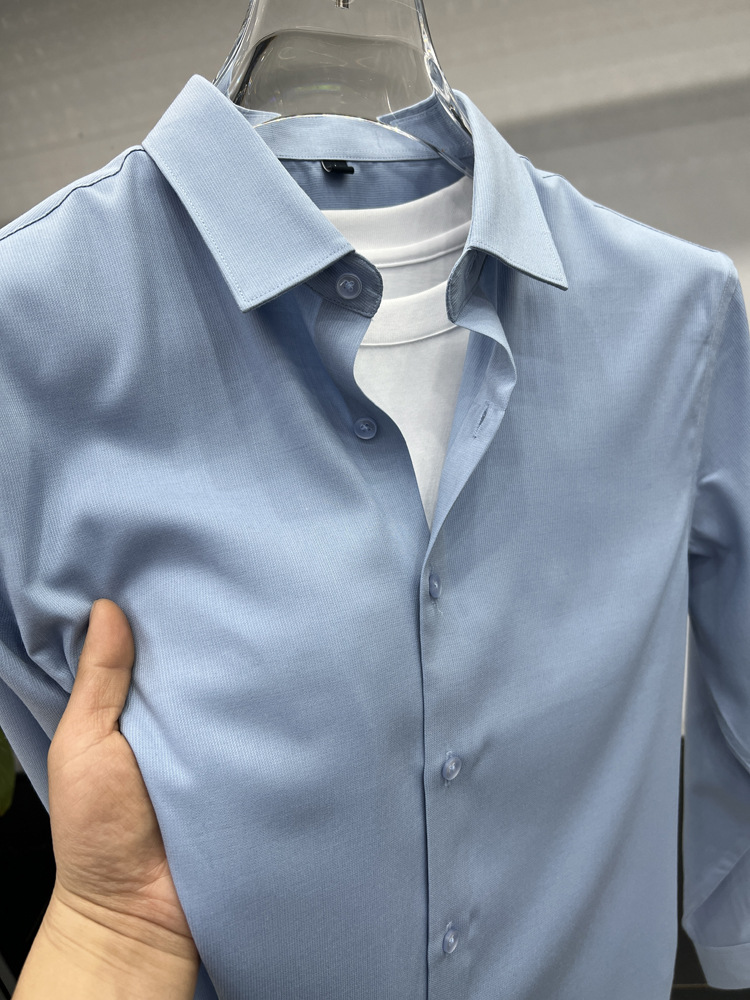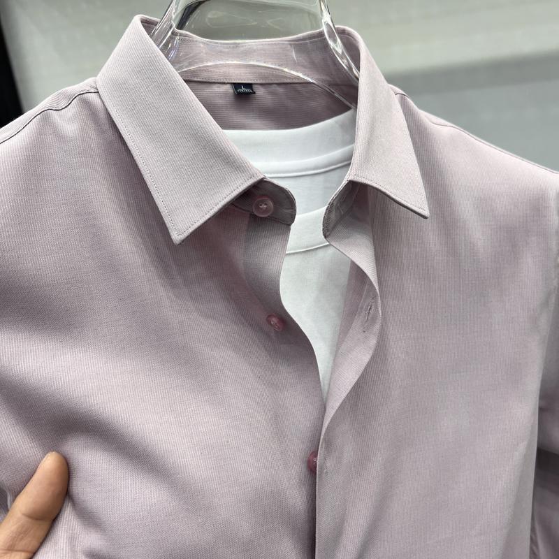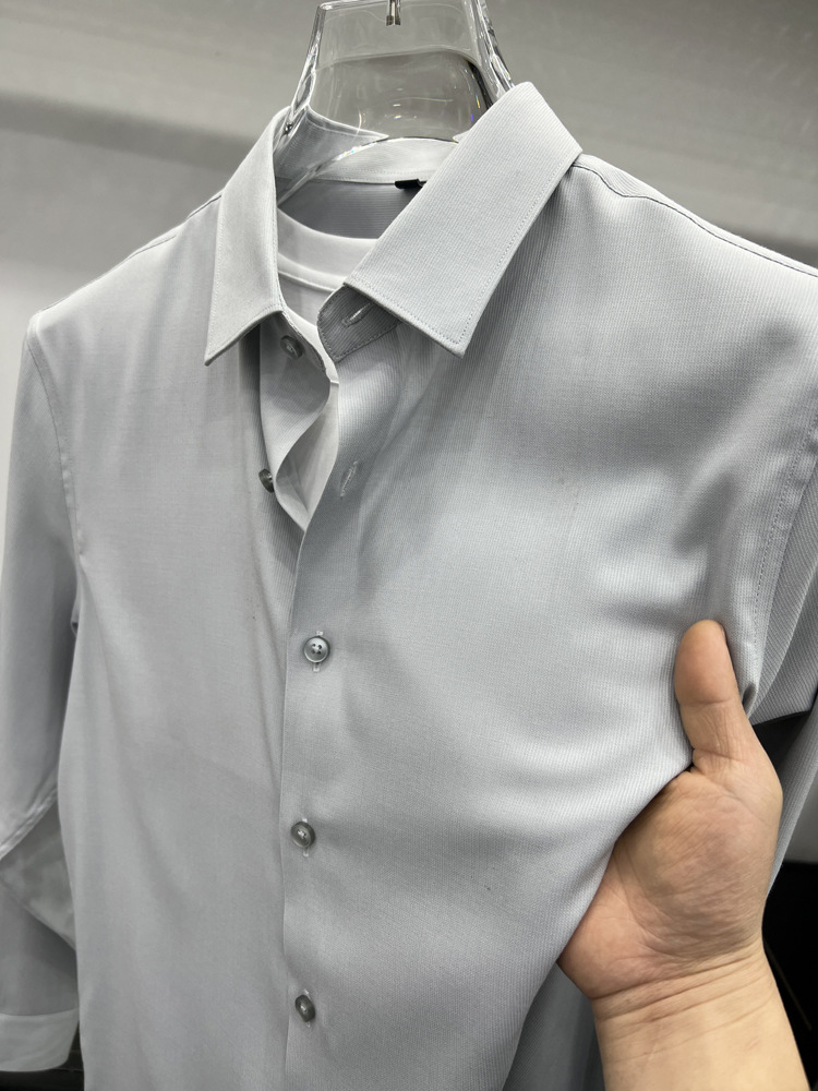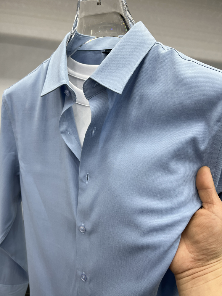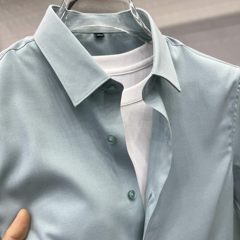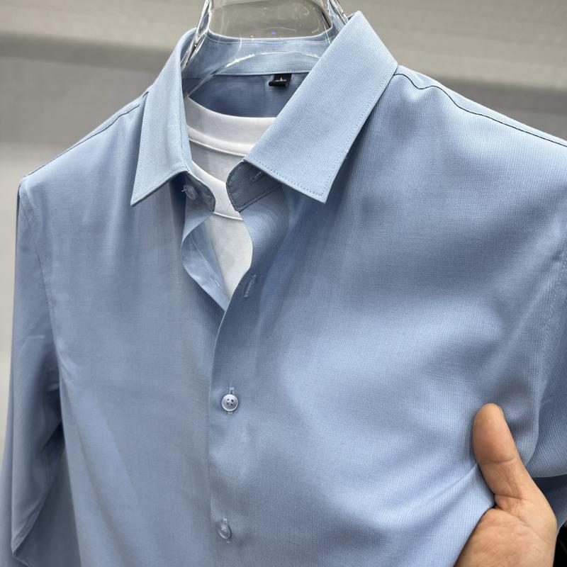 하이 엔드 비즈니스 셔츠 남성용 긴팔 봄과 가을 얇은 단색 주름 방지 비 다림질 인치 의류 남성용 뽕나무 실크 셔츠 작업스토어 가기
