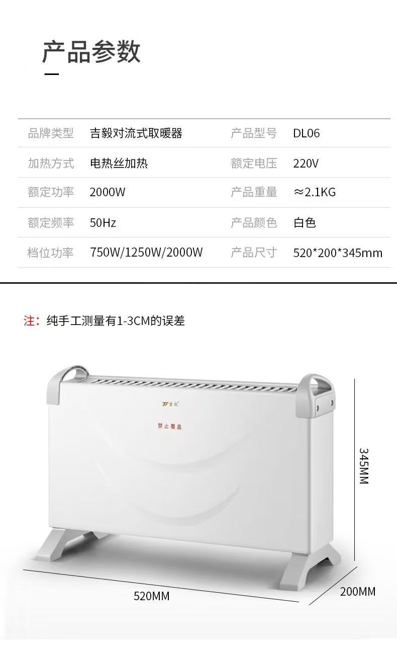 Jiyi 히터 대류 가정용 자동 에너지 절약 전기 히터 사무실 욕실 빠른 가열 전기 히터 따뜻한 공기 송풍기스토어 가기
