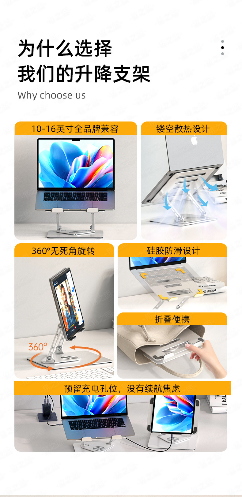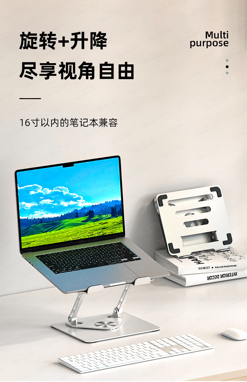 노트북 스탠드 범용 휴대용 수직 데스크탑 높이 증가 기본 360도 회전 MacBook 게임 노트북