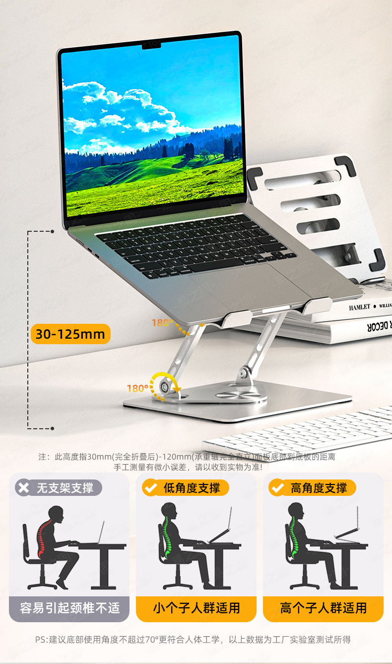 노트북 스탠드 범용 휴대용 수직 데스크탑 높이 증가 기본 360도 회전 MacBook 게임 노트북스토어 가기
