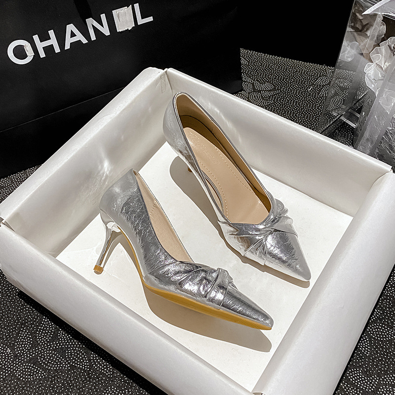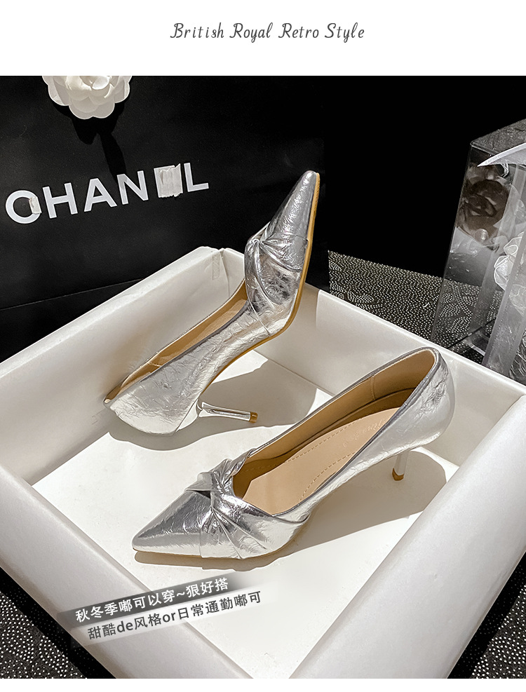 새로운 중국 스타일 분홍색 뾰족한 스틸레토 힐 신발 여성의 2025 년 봄과 여름 새로운 도착 얕은 입 올매치 인터넷 인기 신발스토어 가기