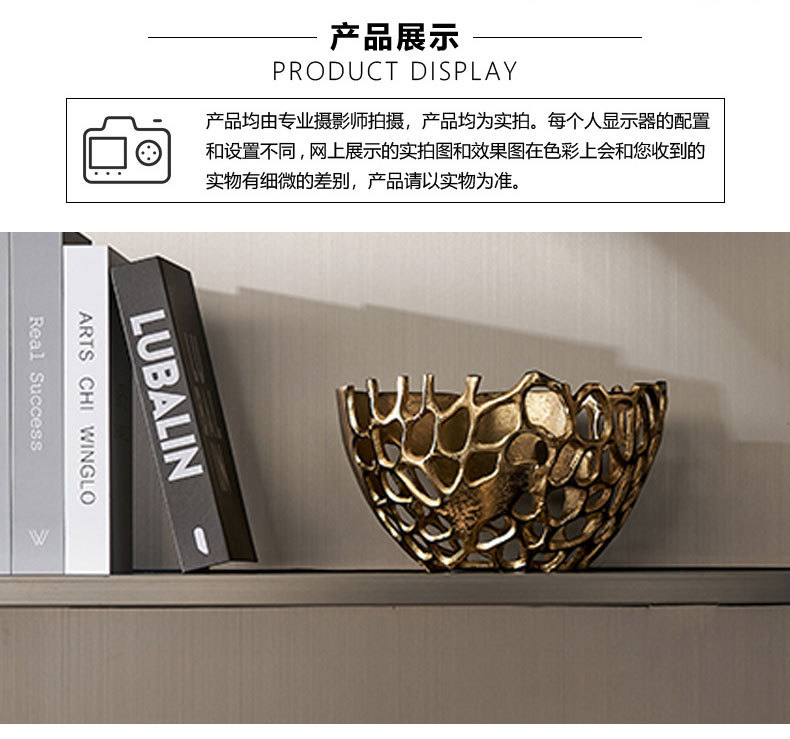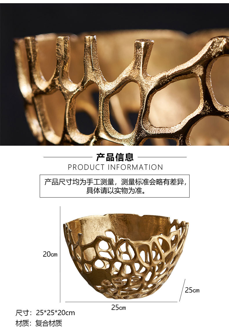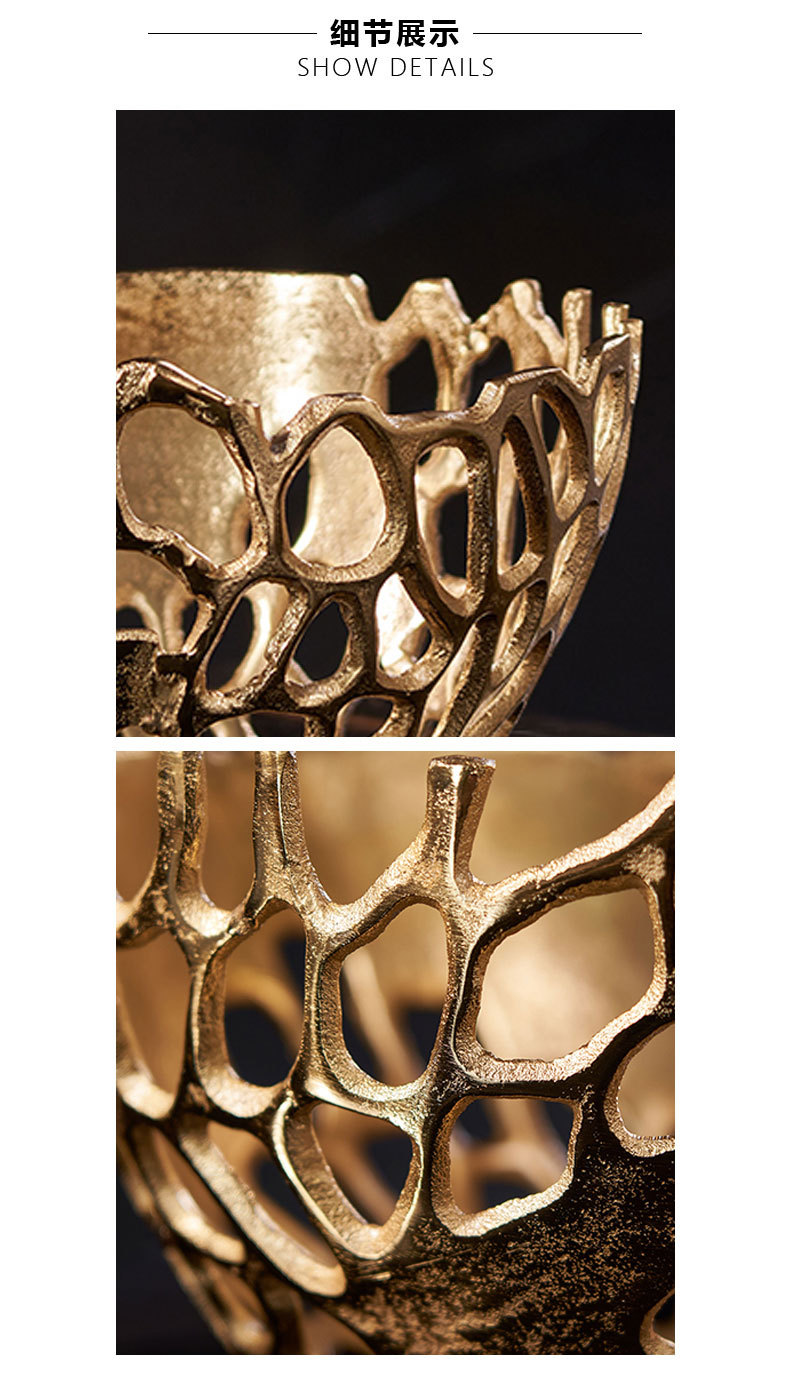 현대 간단한 가벼운 고급 금속 중공 과일 플레이트 장식품 모델 하우스 판매 사무실 홈 부드러운 장식 고급 감각