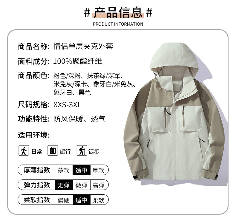 남성과 여성을 위한 마운틴 스타일 아웃도어 싱글 레이어 재킷, 얇고 트렌디한 방풍 재킷, 커플 스타일 등산 여행복