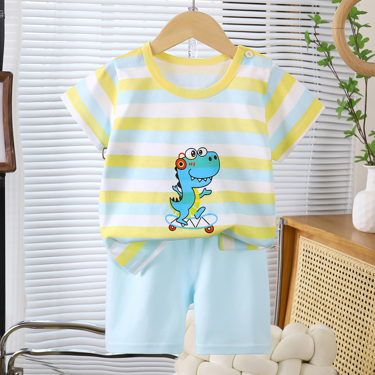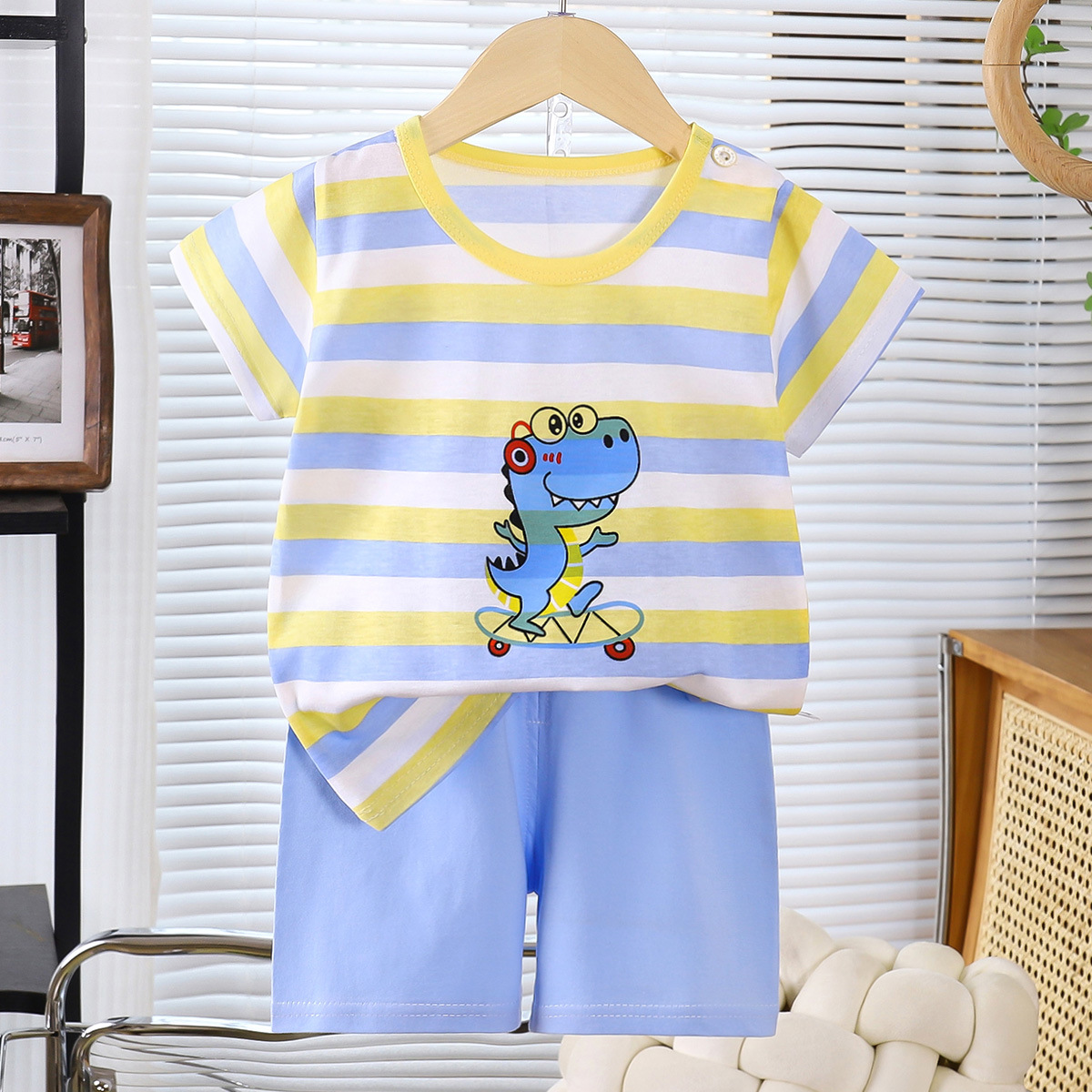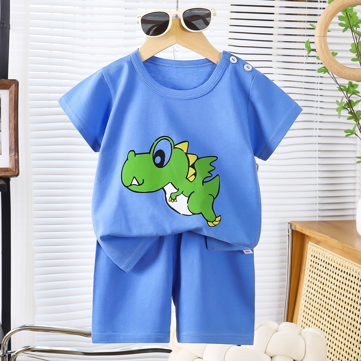 도매 아기 반팔 정장 여름 어린이 만화 반팔 반바지 어린이 티셔츠 순수 코튼 소프트 귀여운 짧은 스타일스토어 가기