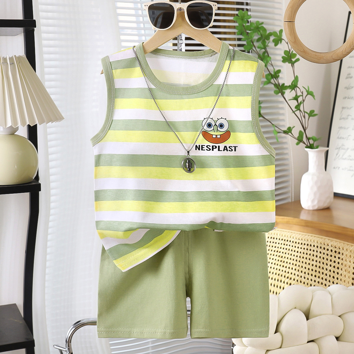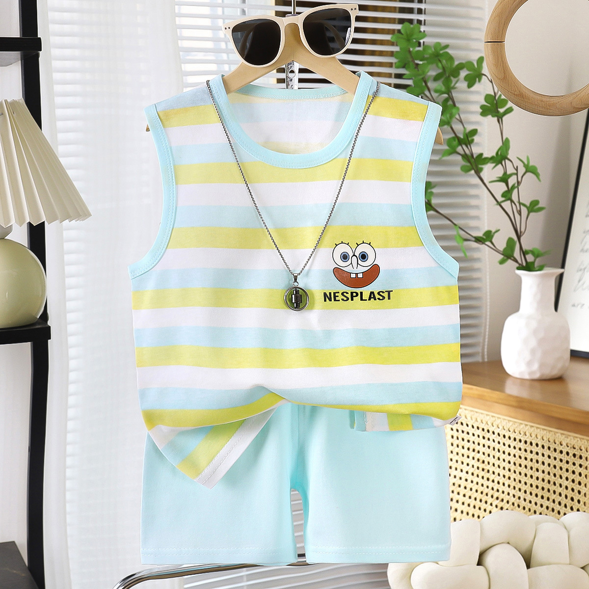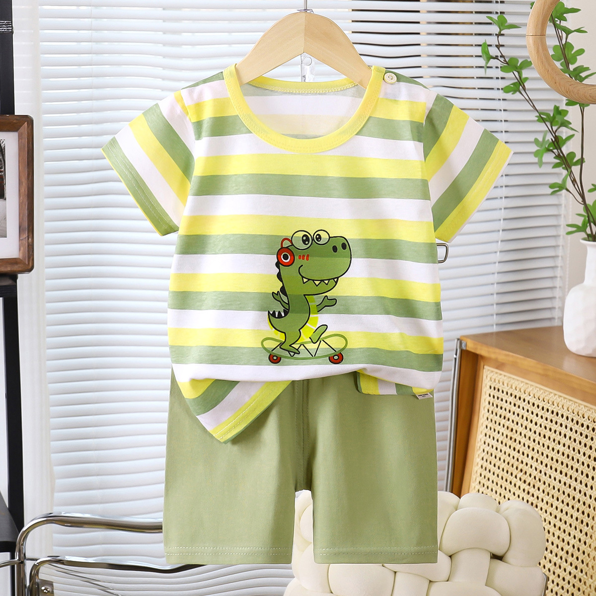 도매 아기 반팔 정장 여름 어린이 만화 반팔 반바지 어린이 티셔츠 순수 코튼 소프트 귀여운 짧은 스타일스토어 가기
